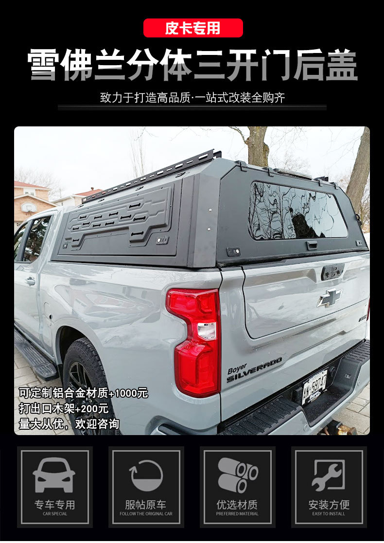 Manganese Steel Split Truck Bed Canopy High Topper Shell for Chevrolet GMC Silverado