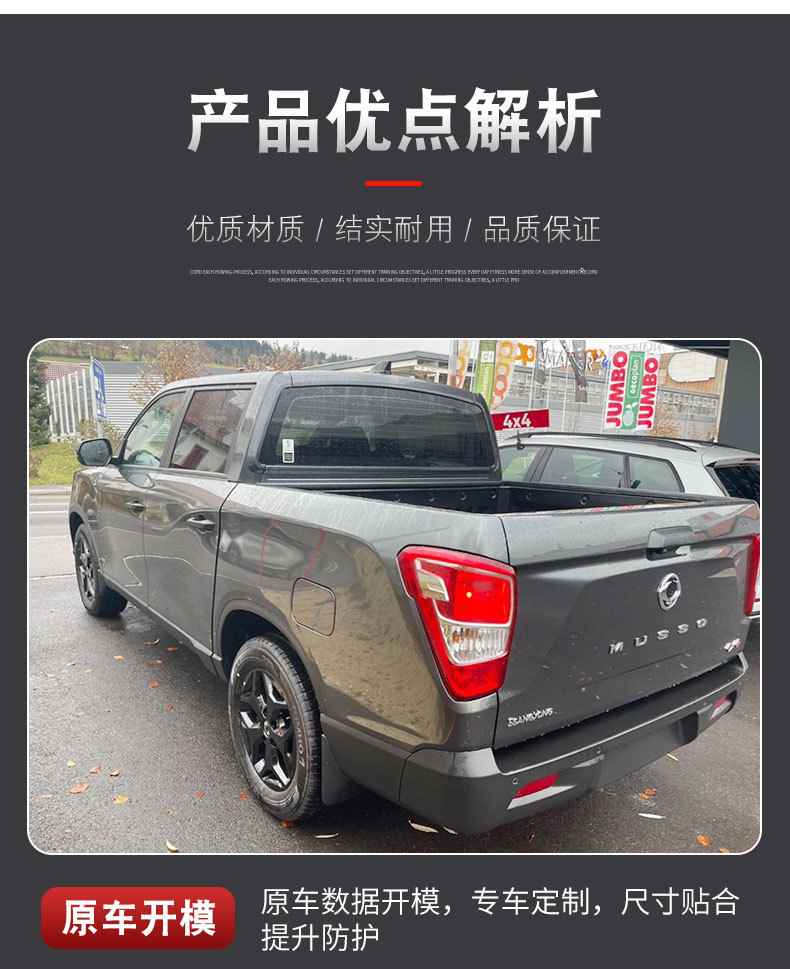 - Custom fitment designed specifically for SsangYong Musso pickup trucks to ensure seamless integration with the truck bed.