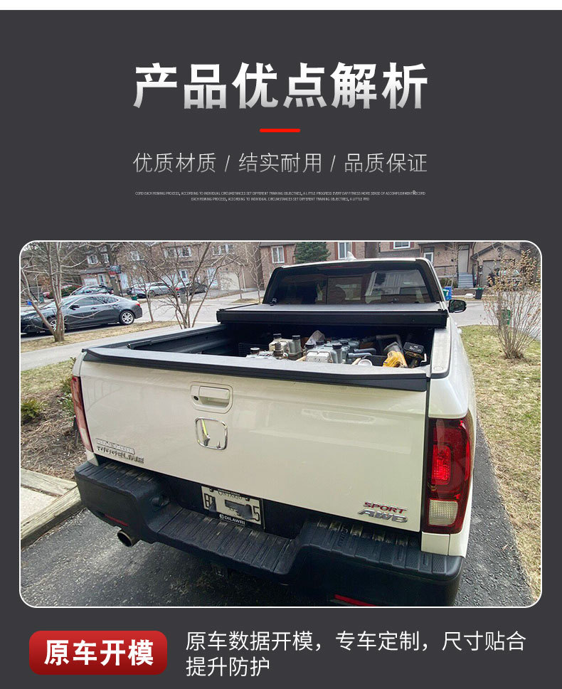 - Custom Fit Design: Engineered specifically for the Honda Ridgeline truck bed to ensure a seamless integration and full coverage protection.