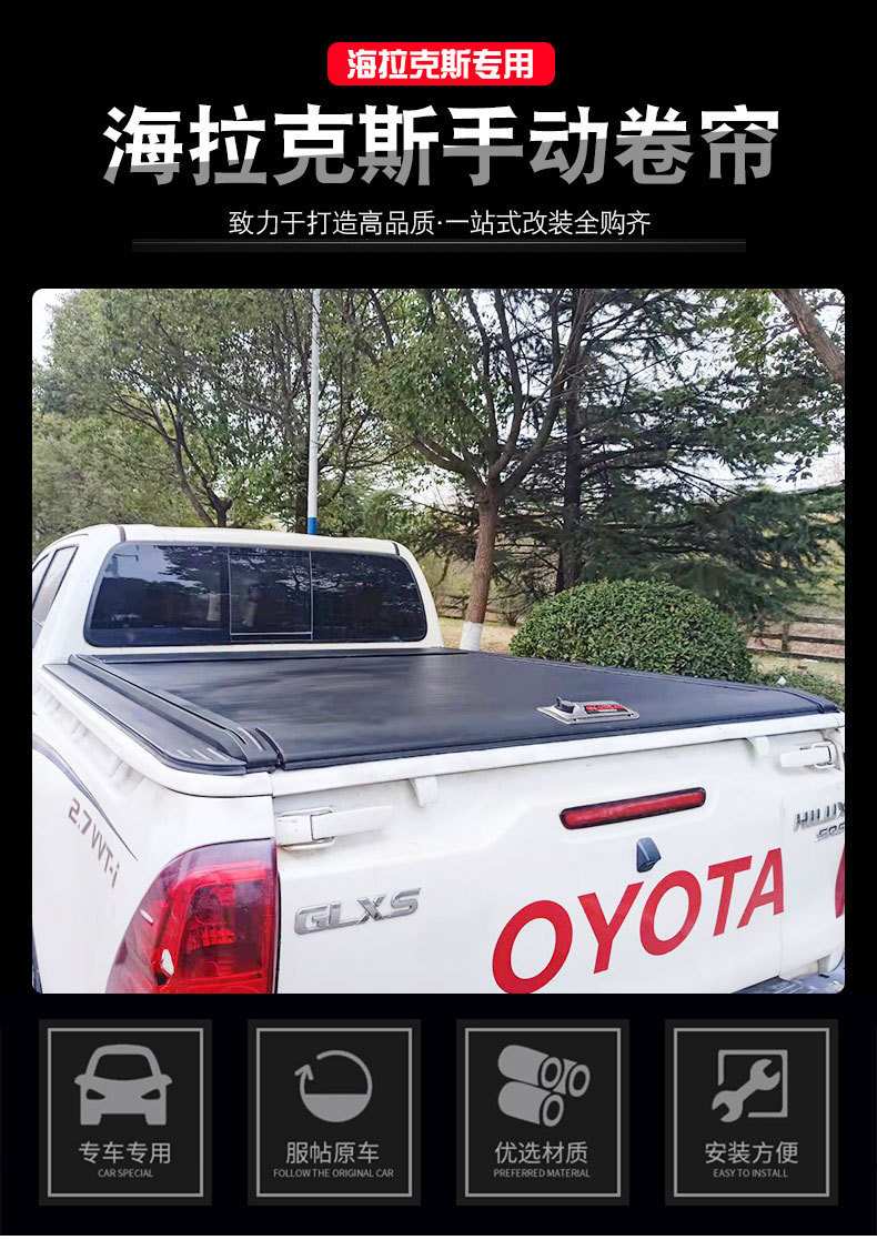 Upgrade your Toyota Hilux with this durable manual retractable roller shutter. Features weather resistance and secure cargo protection for Revo, SR5, and Vigo.