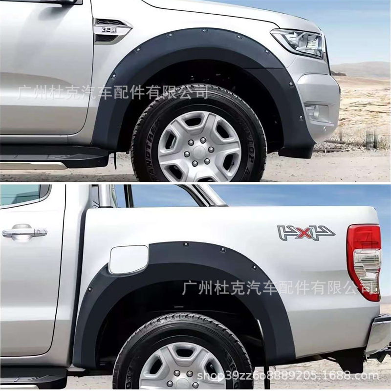 Upgrade your Ford Ranger T6 2012-2015 with durable ABS fender flares featuring decorative rivets. Enhance off-road protection and style with this easy-to-install kit.