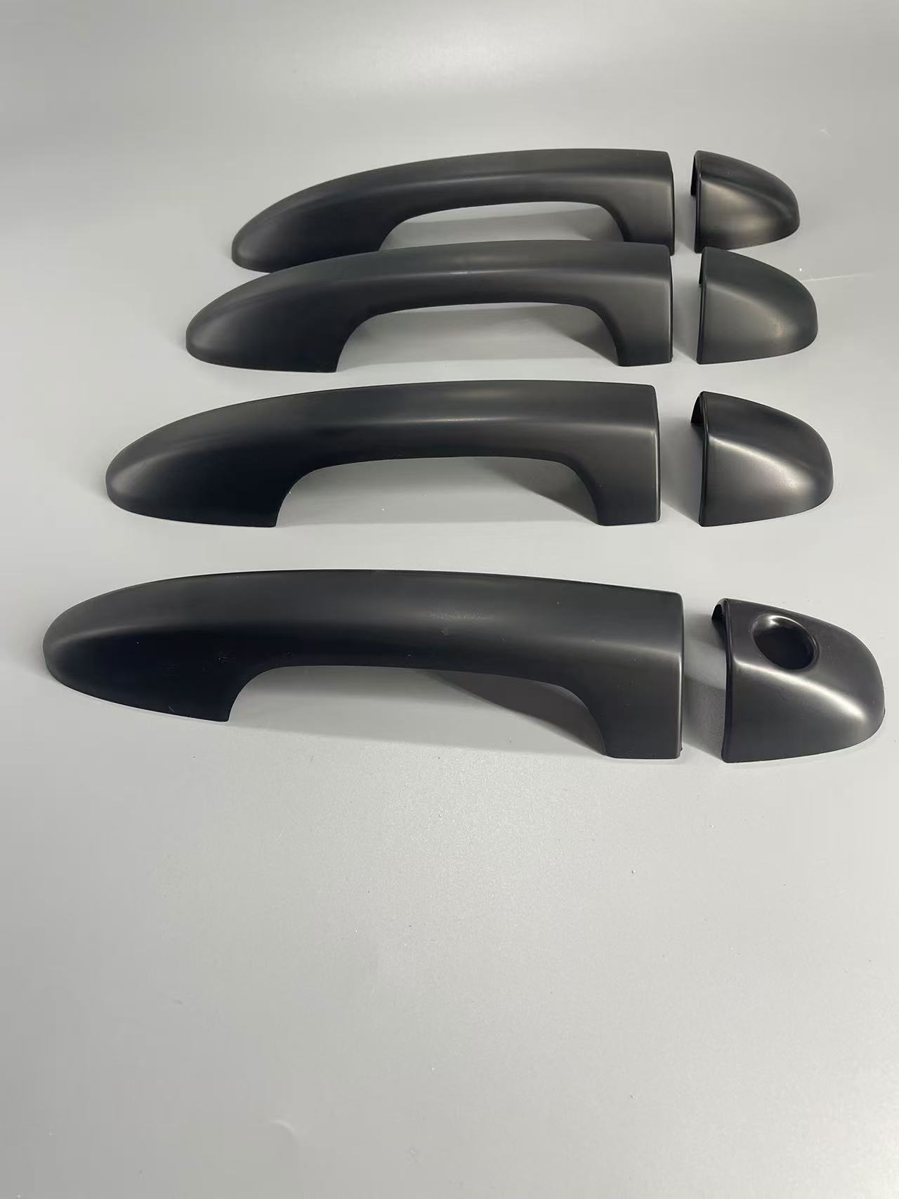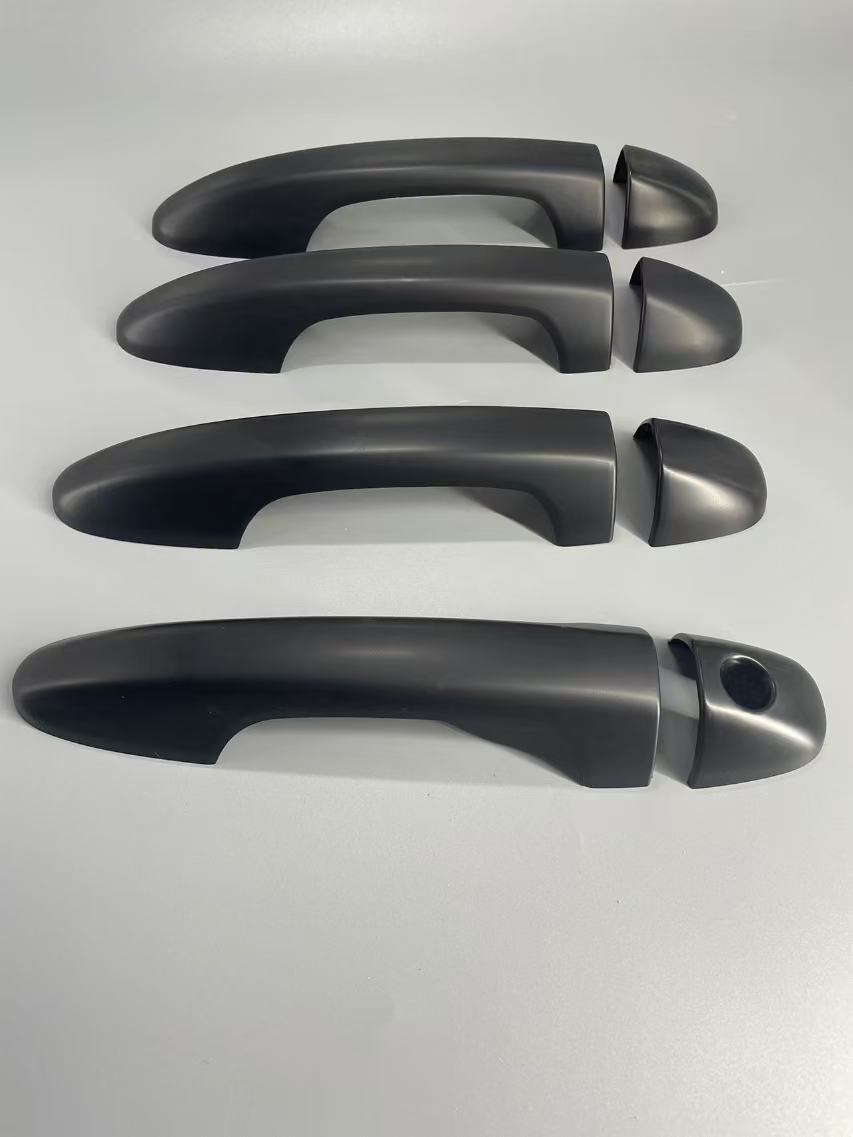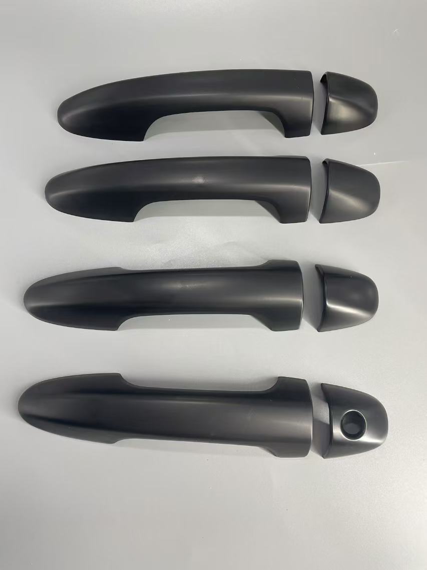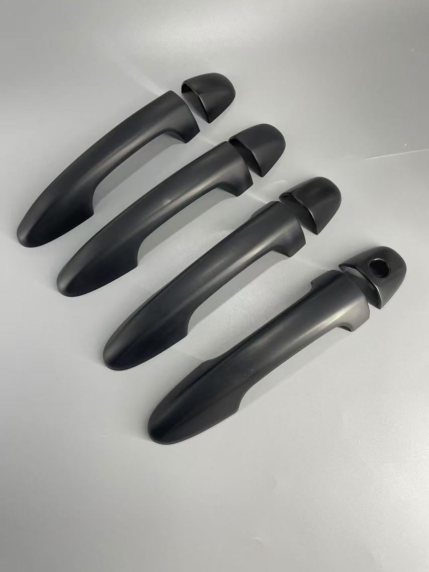 Tags: automotive styling accents, door handle covers, exterior handle overlay, Hilux Revo accessories, matte black truck trim, truck handle protection