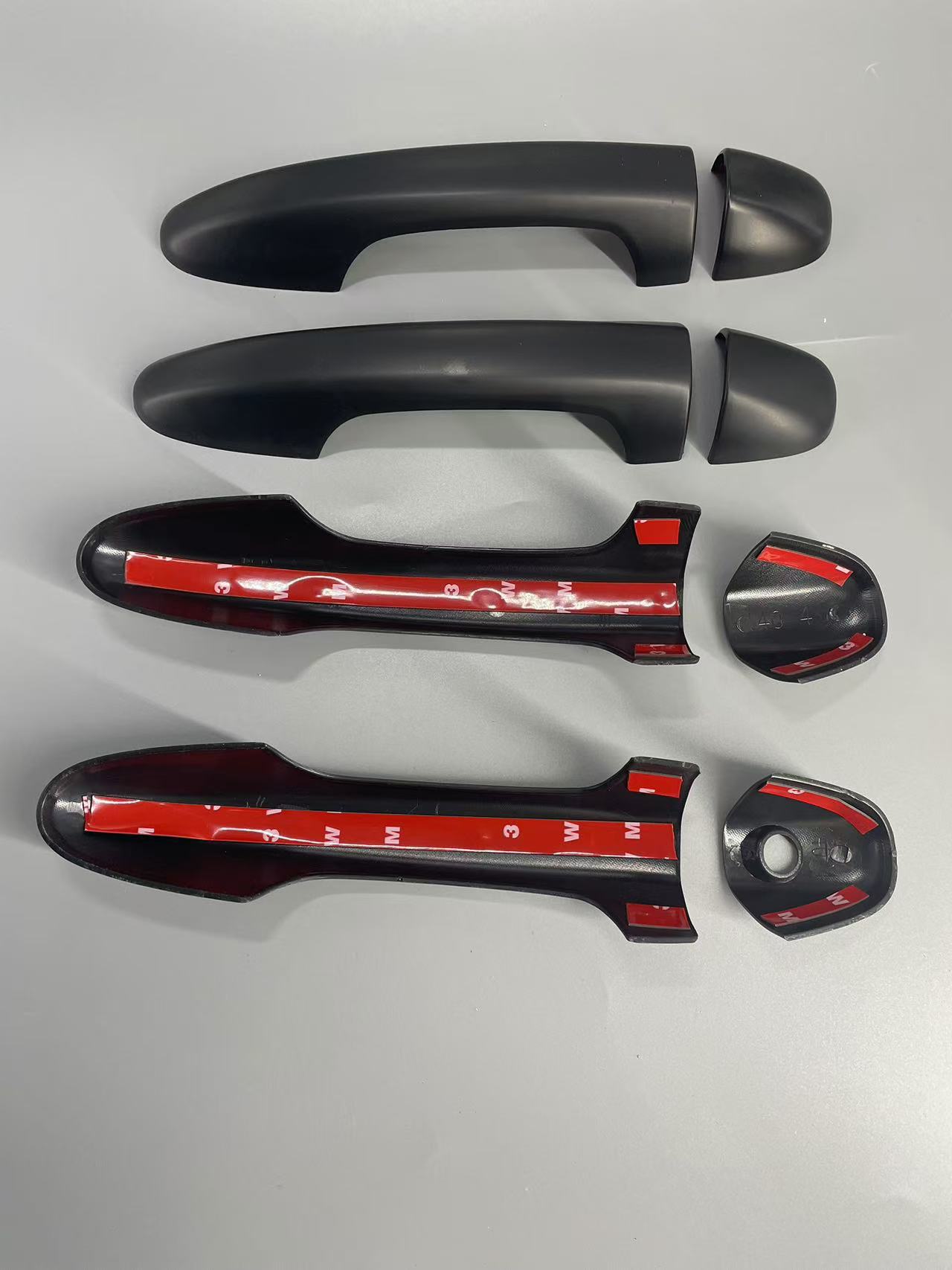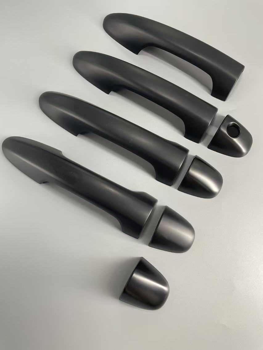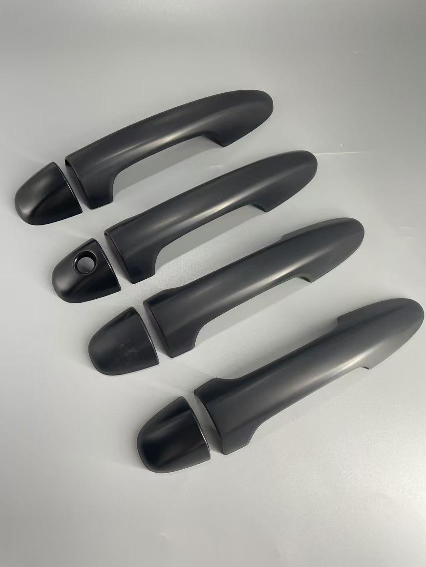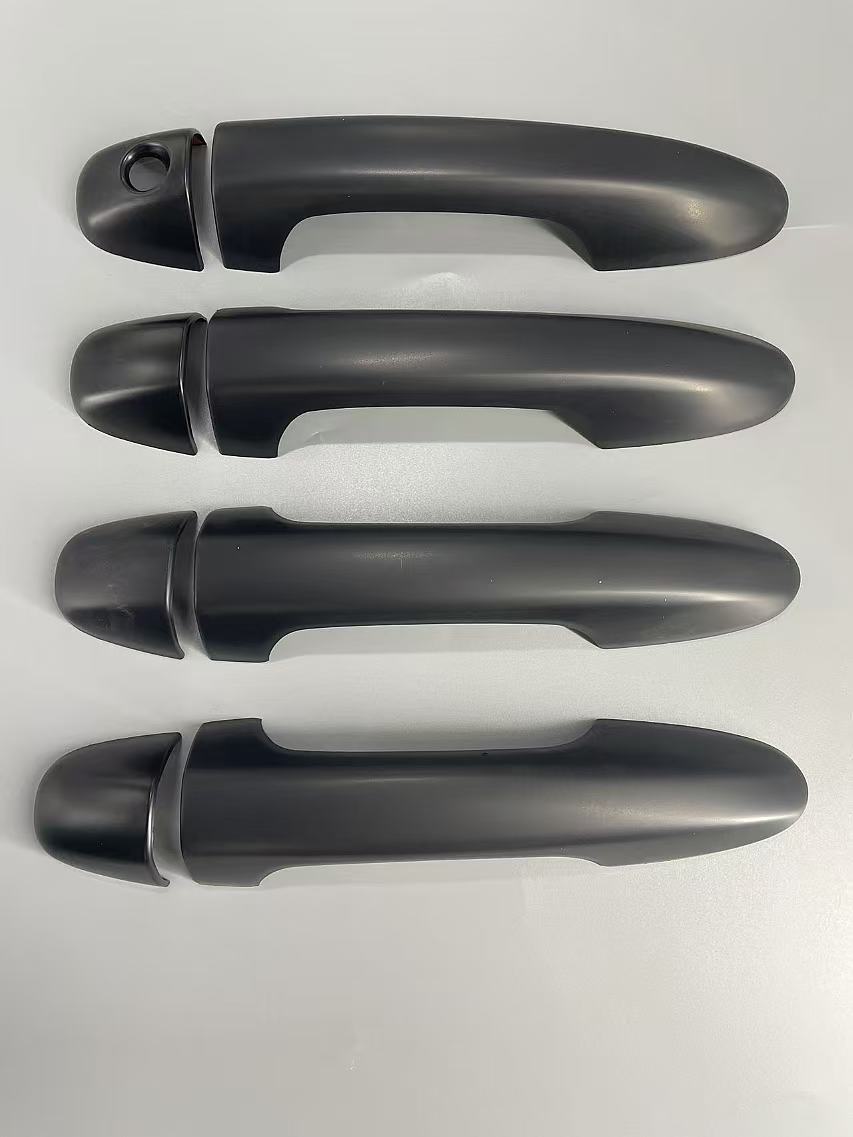 Tags: automotive styling accents, door handle covers, exterior handle overlay, Hilux Revo accessories, matte black truck trim, truck handle protection