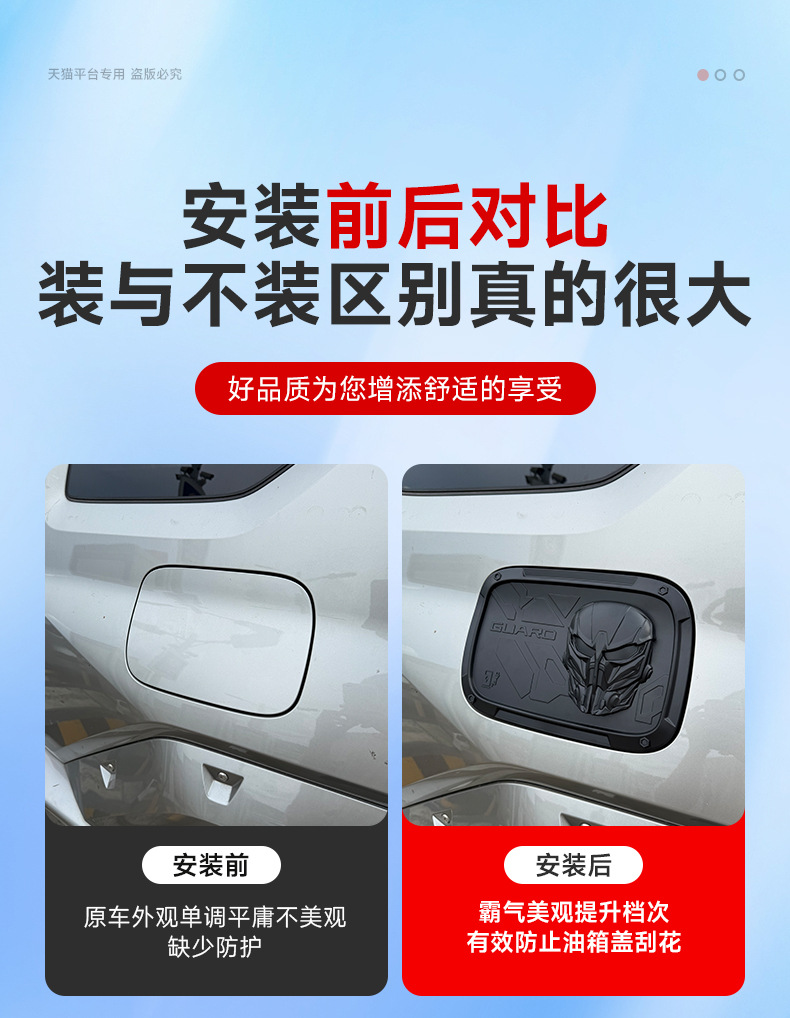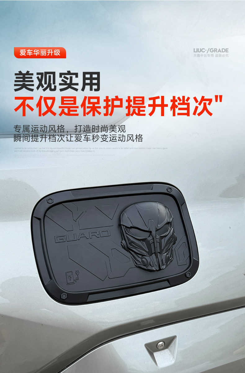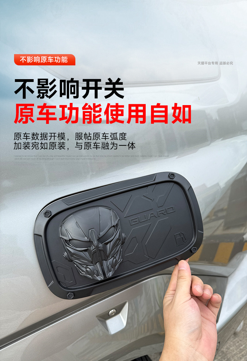 Tags: automotive decorative stickers, black exterior trim, car body modifications, fuel tank cover cap, gas door protector, off-road styling kit