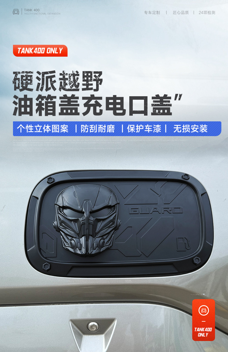 - Specifically designed for Tank 400 Hi4-T exterior fuel tank door cover styling and protection.