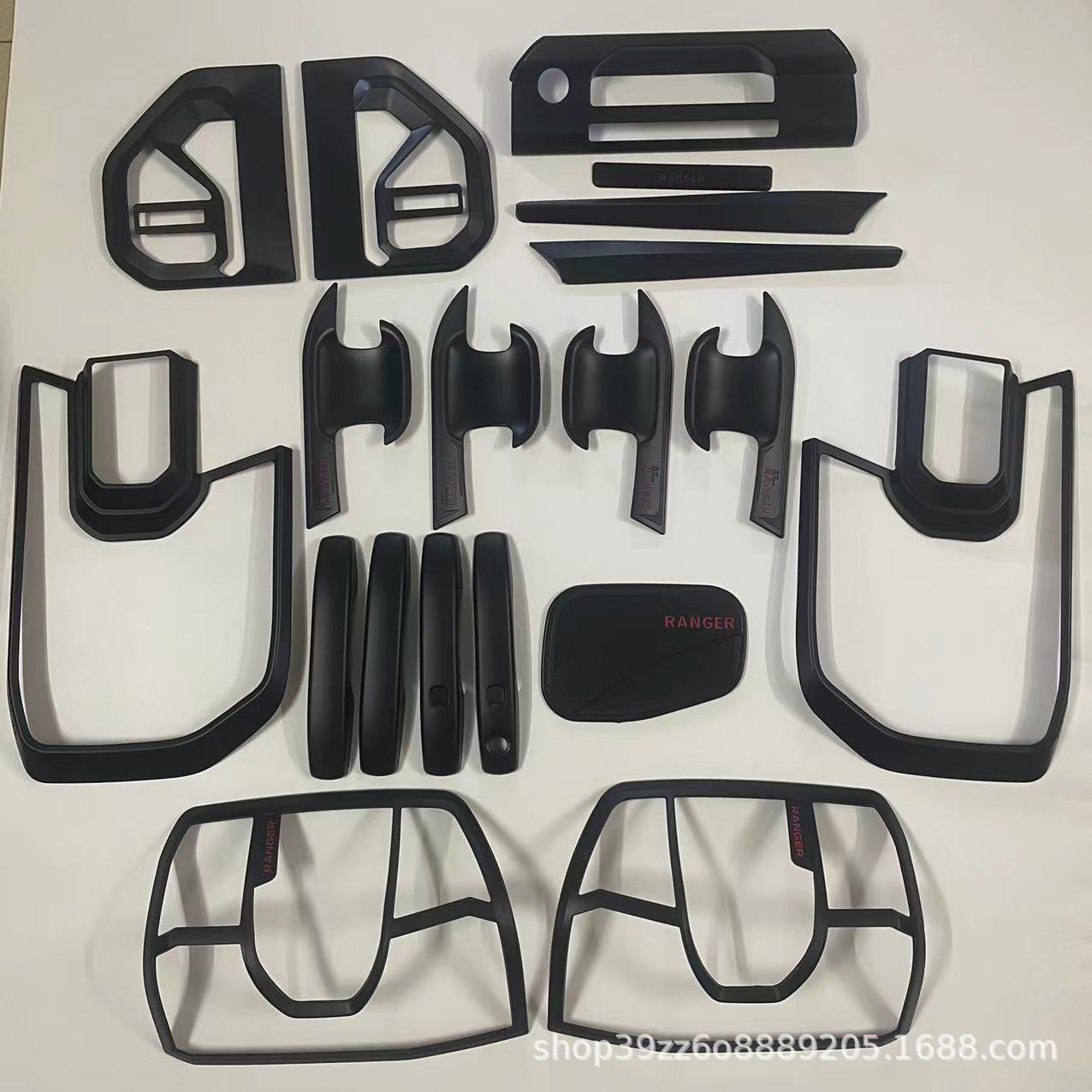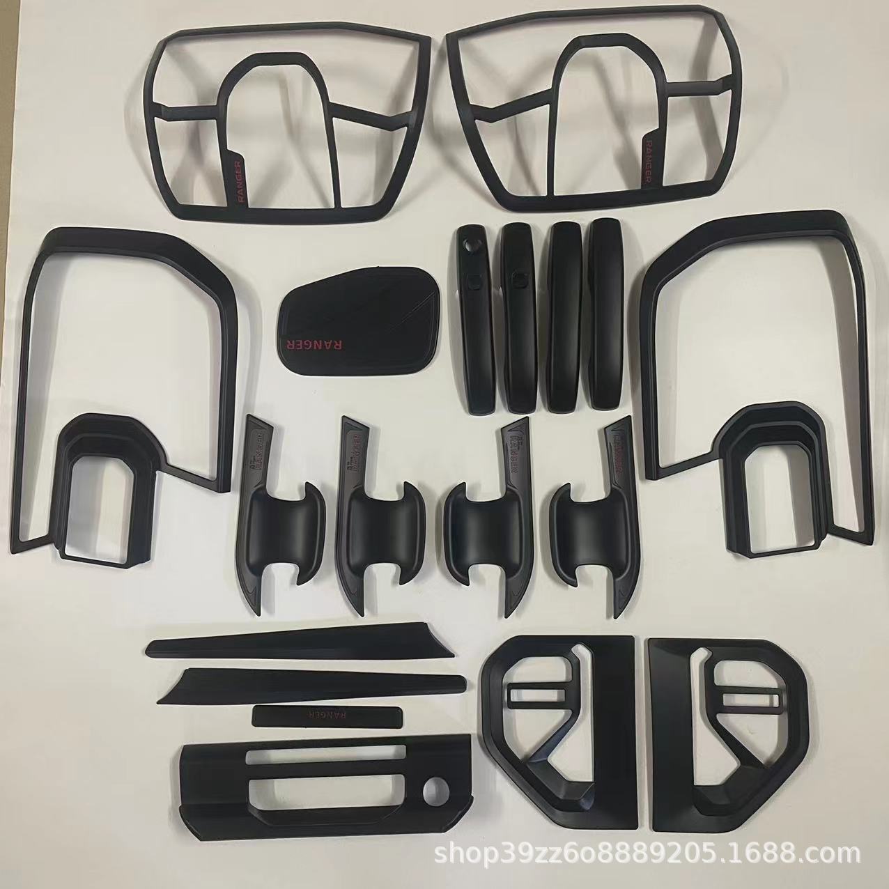 Tags: door handle protectors, exterior styling kit, ford ranger t9 accessories, headlight surround, matte black car trim, off-road truck parts, pickup truck light covers