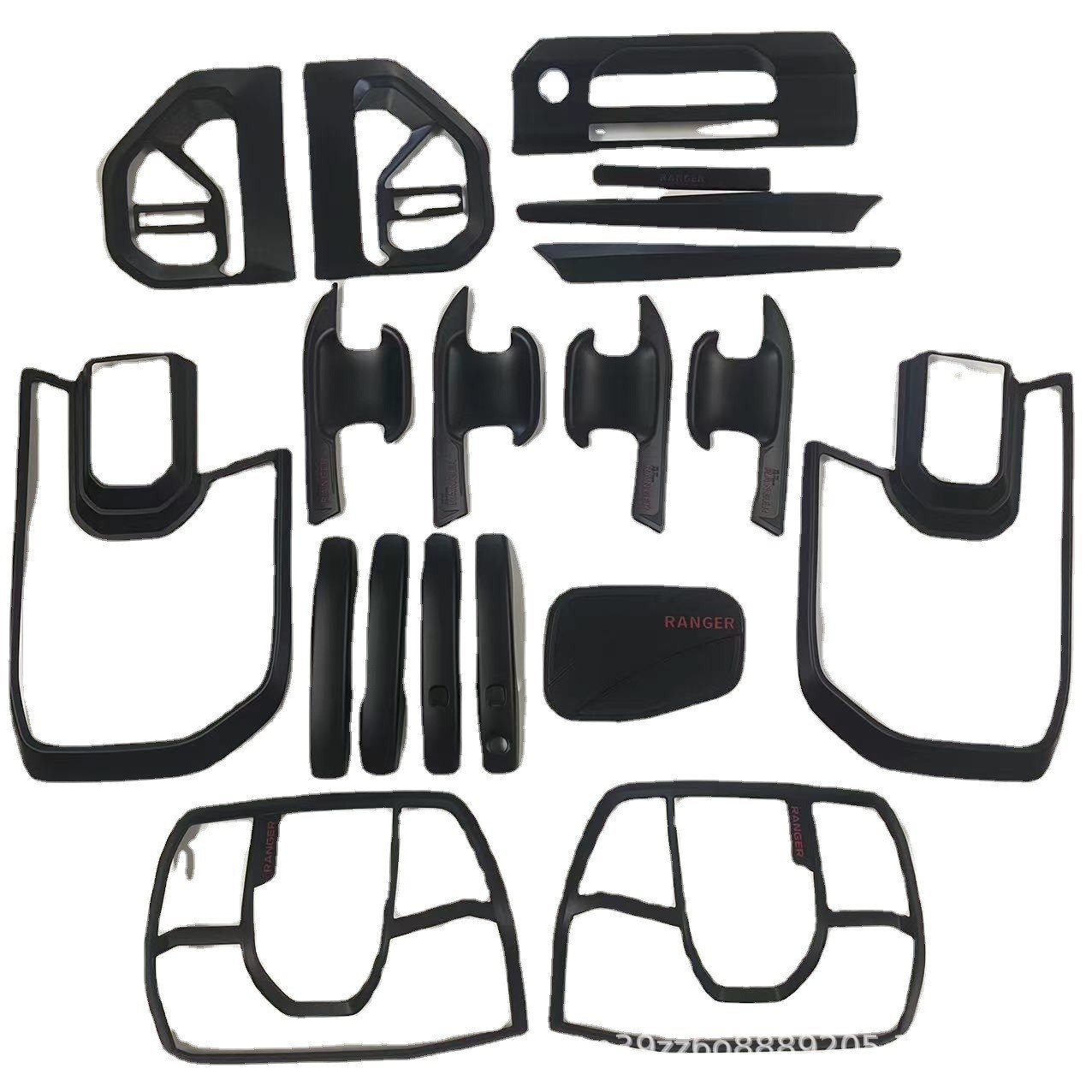 Upgrade your Ford Ranger T9 2022+ with this premium matte black exterior trim kit. Includes headlight, taillight, and handle covers for durable style and protection.
