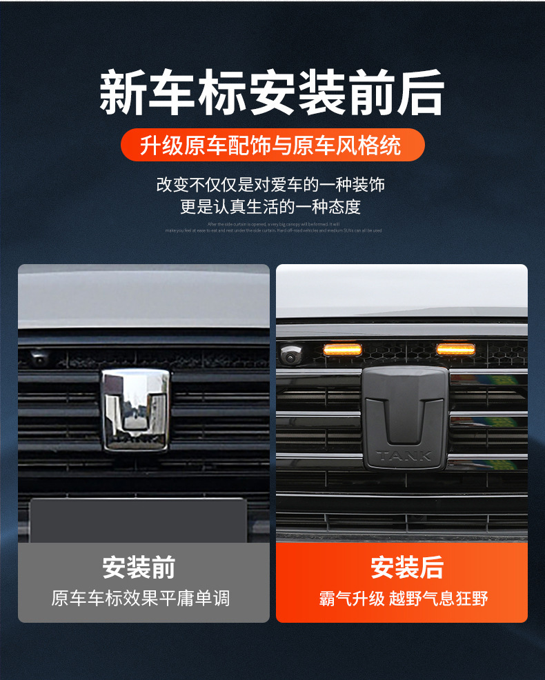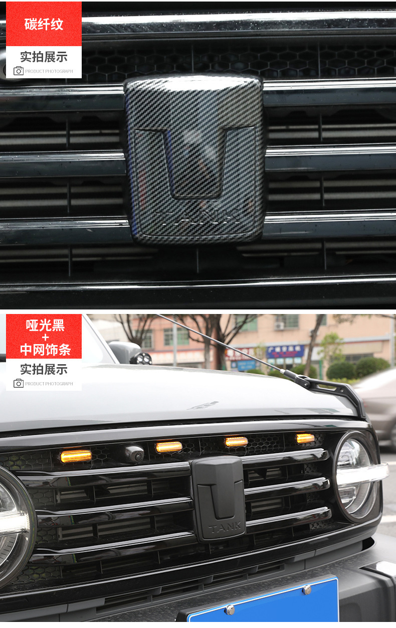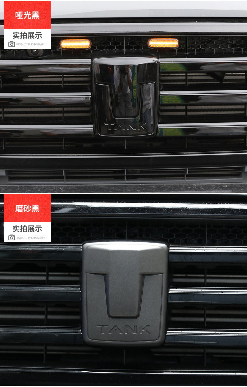 Tags: automotive styling decals, black grill badge, car badge overlay, car emblem cover, exterior trim kit, Tank 300 accessories, wheel hub sticker
