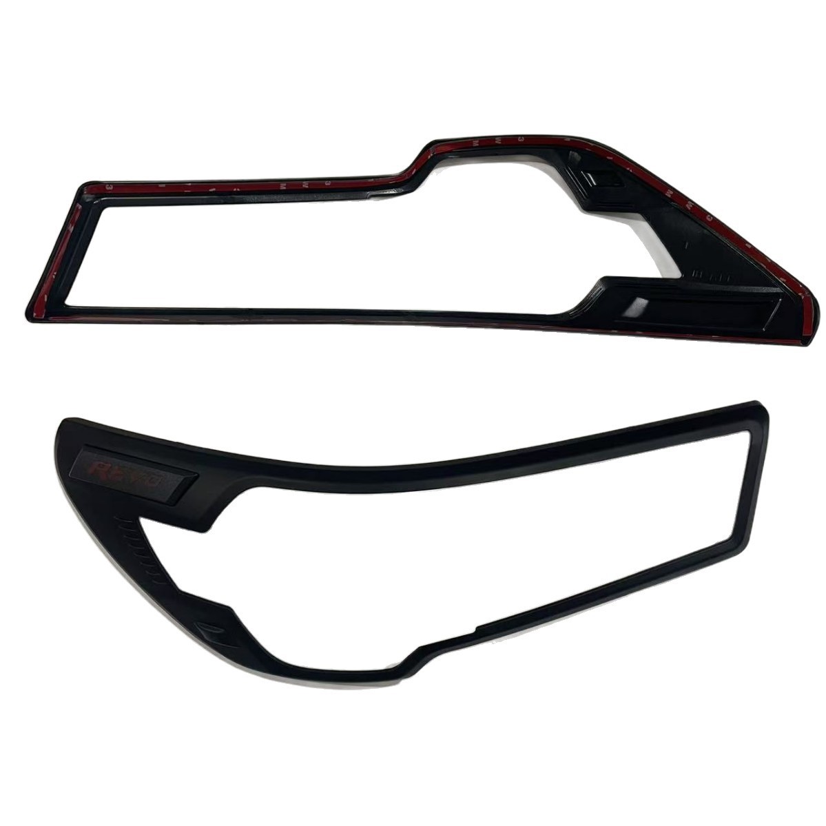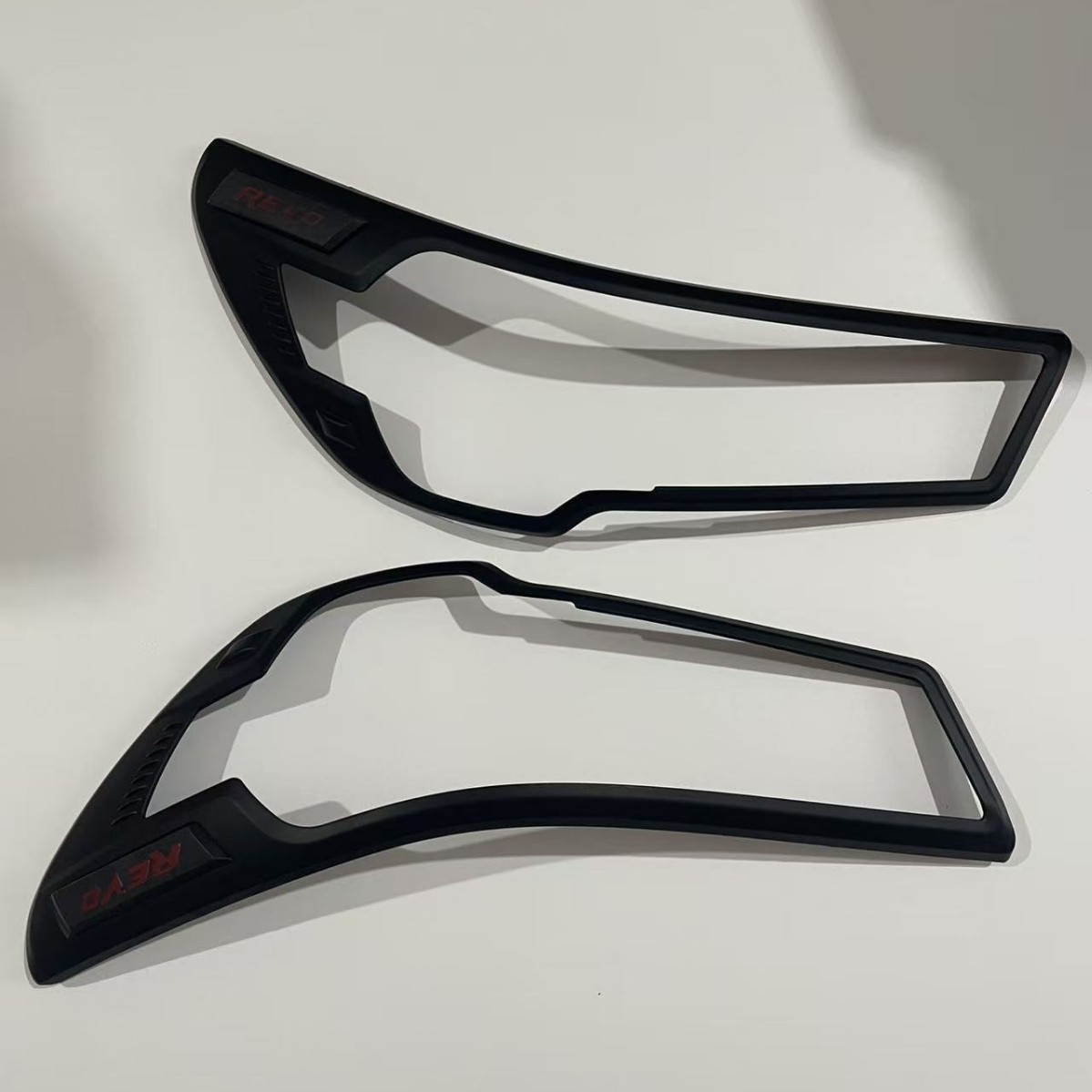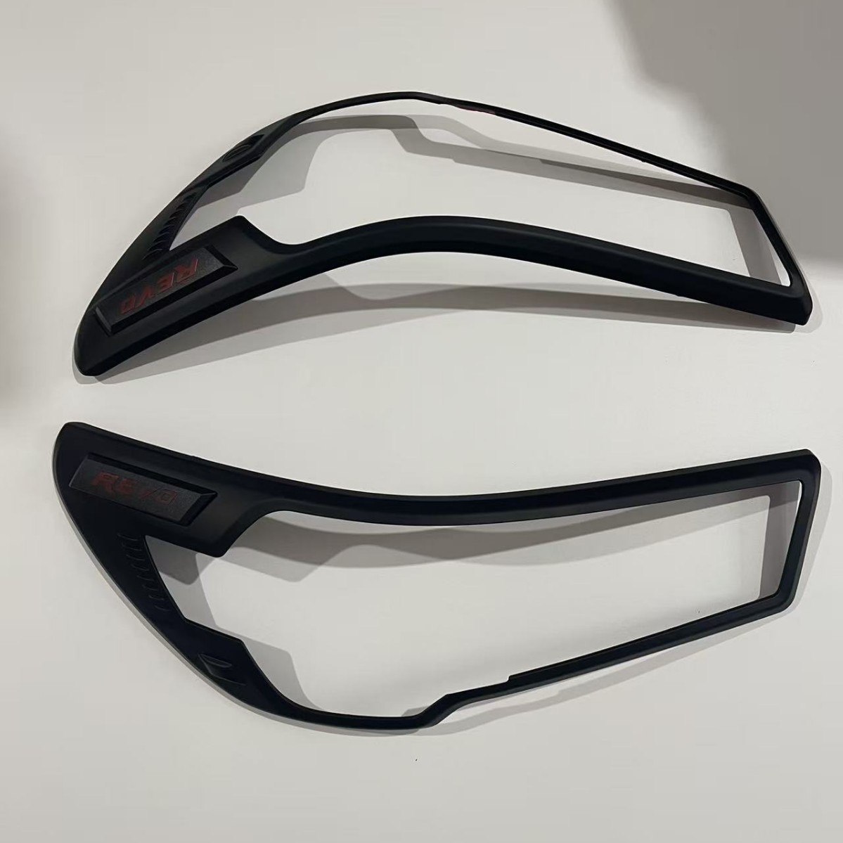 Upgrade your 2021 Toyota Hilux REVO with these premium matte black front headlight covers. Durable ABS material, easy adhesive install, and sleek styling protection.