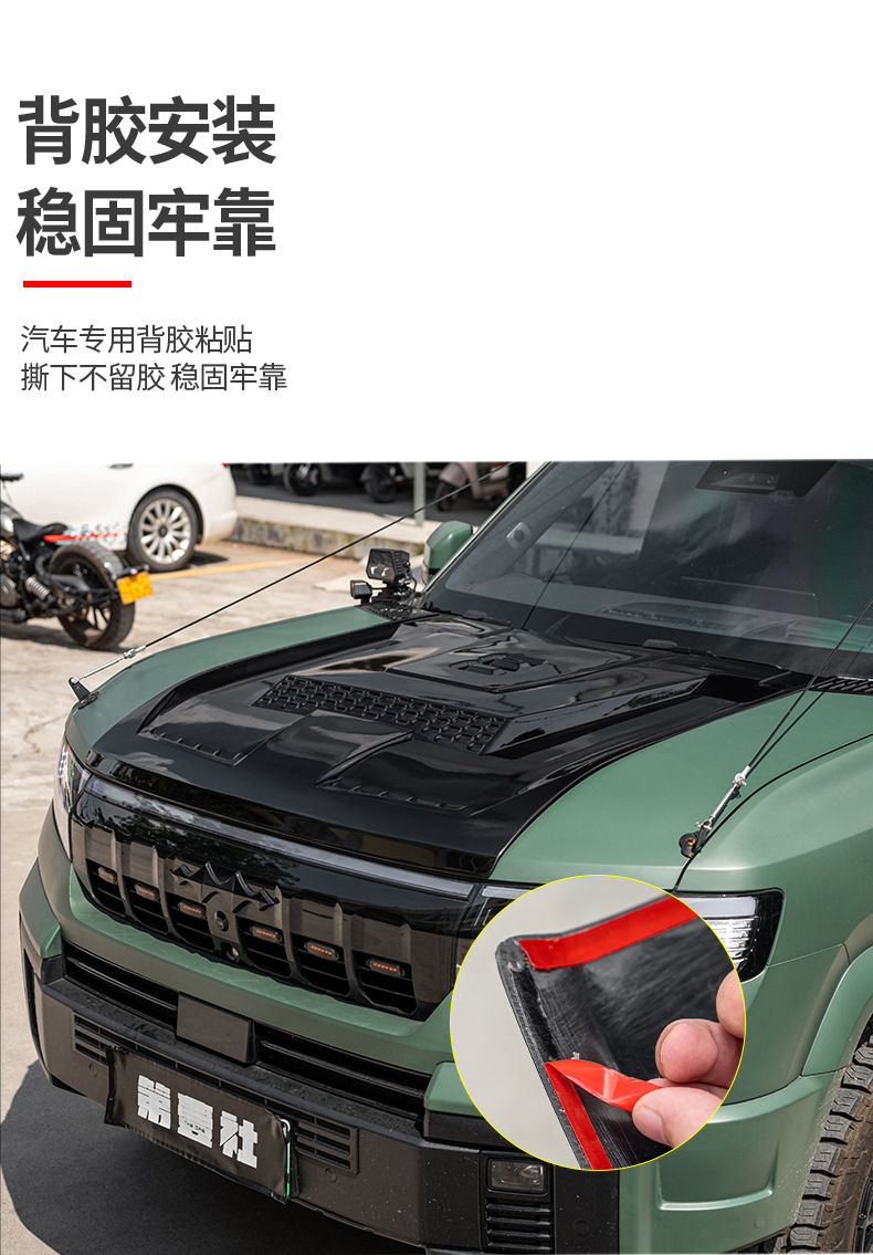 Upgrade your FangChengBao Leopard 8 with this matte black hood cover trim. Durable ABS construction with easy adhesive install for a premium Dark Knight look.