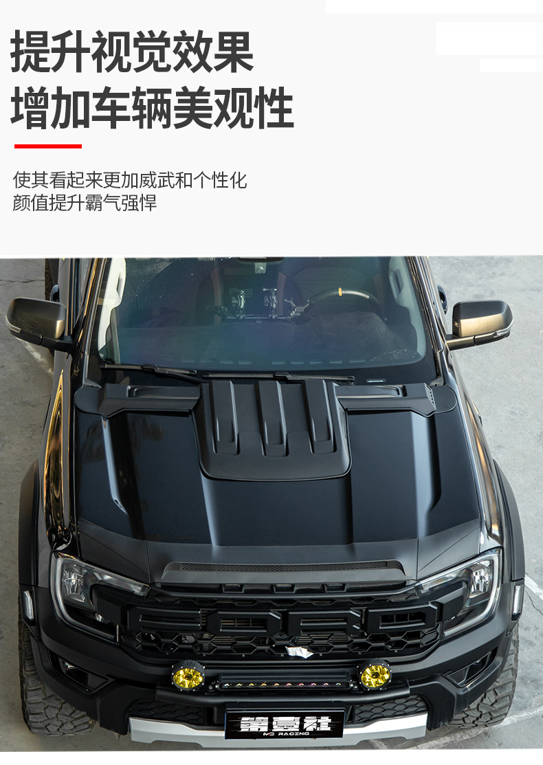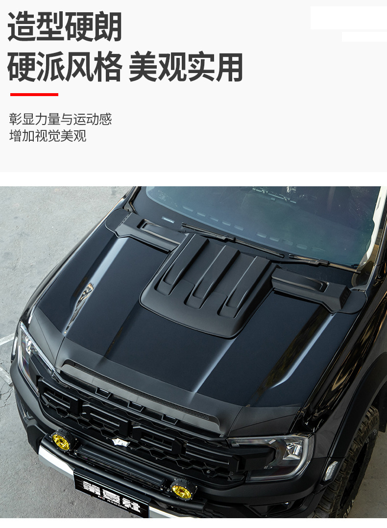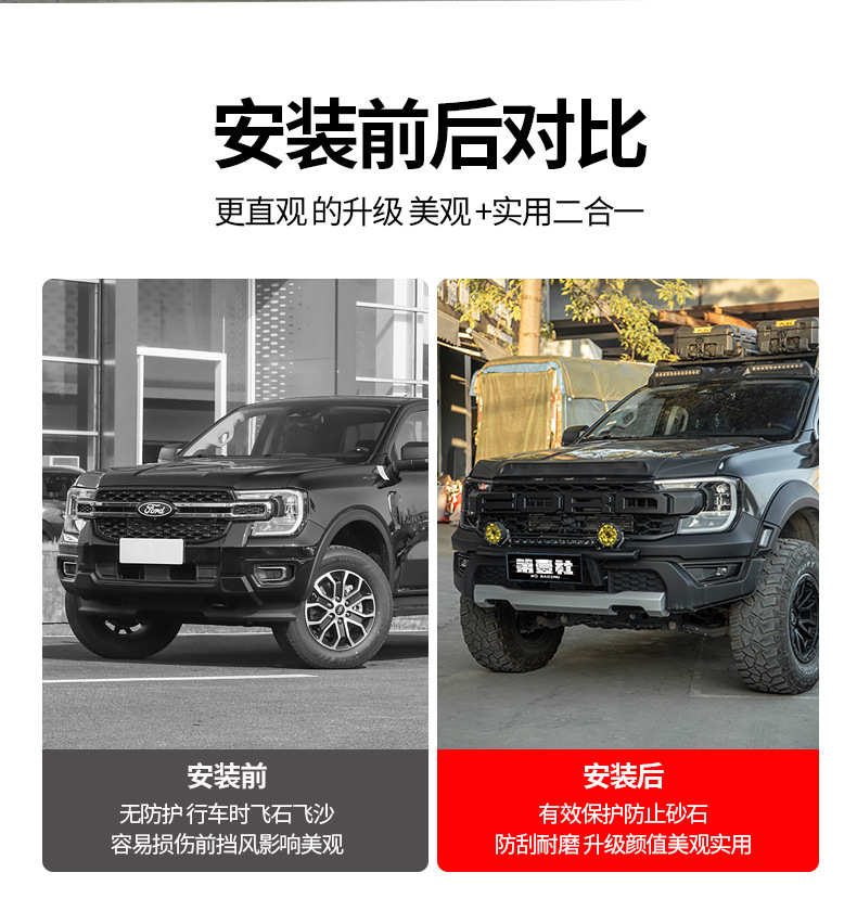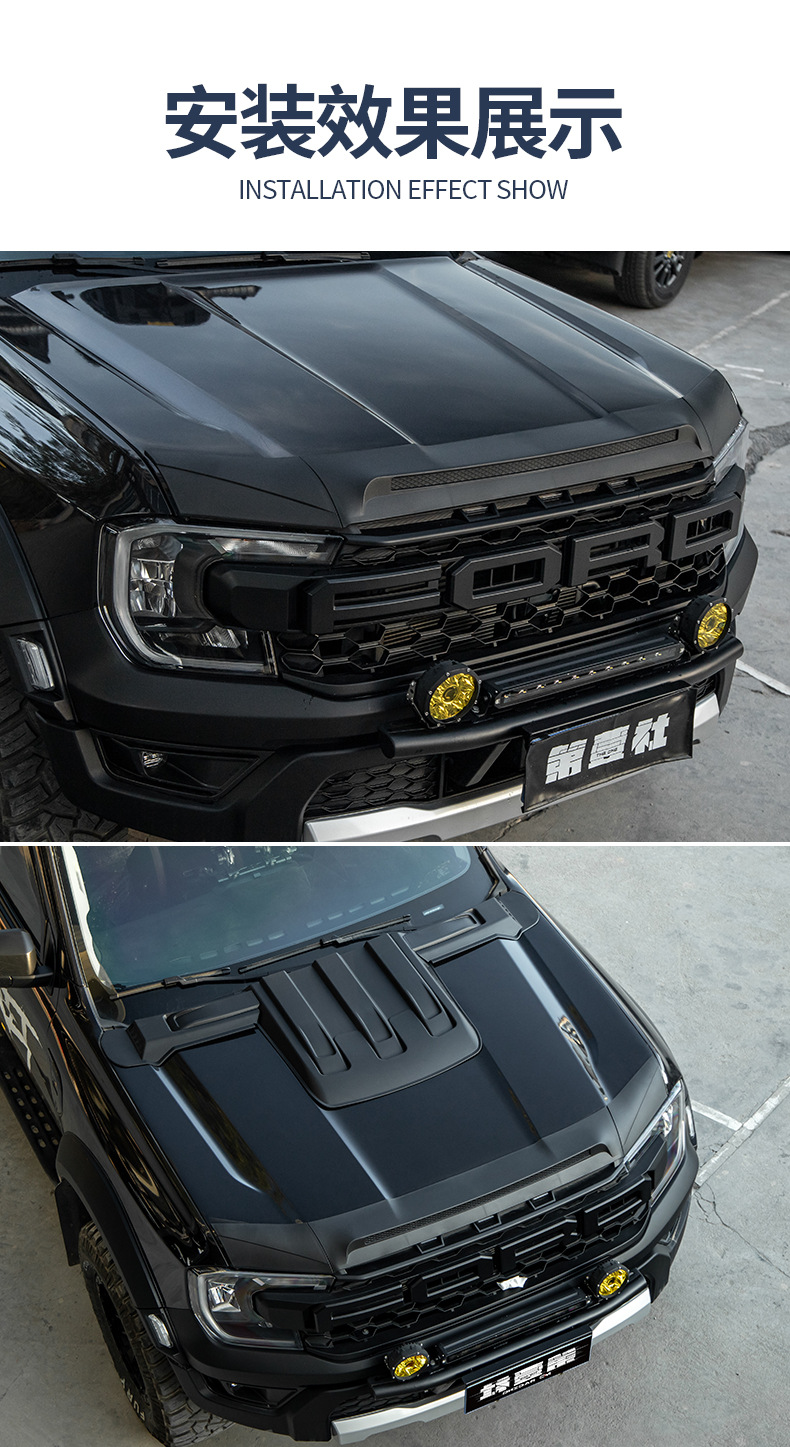 - Customized fitment for Ford Ranger models to provide comprehensive front-end hood protection.