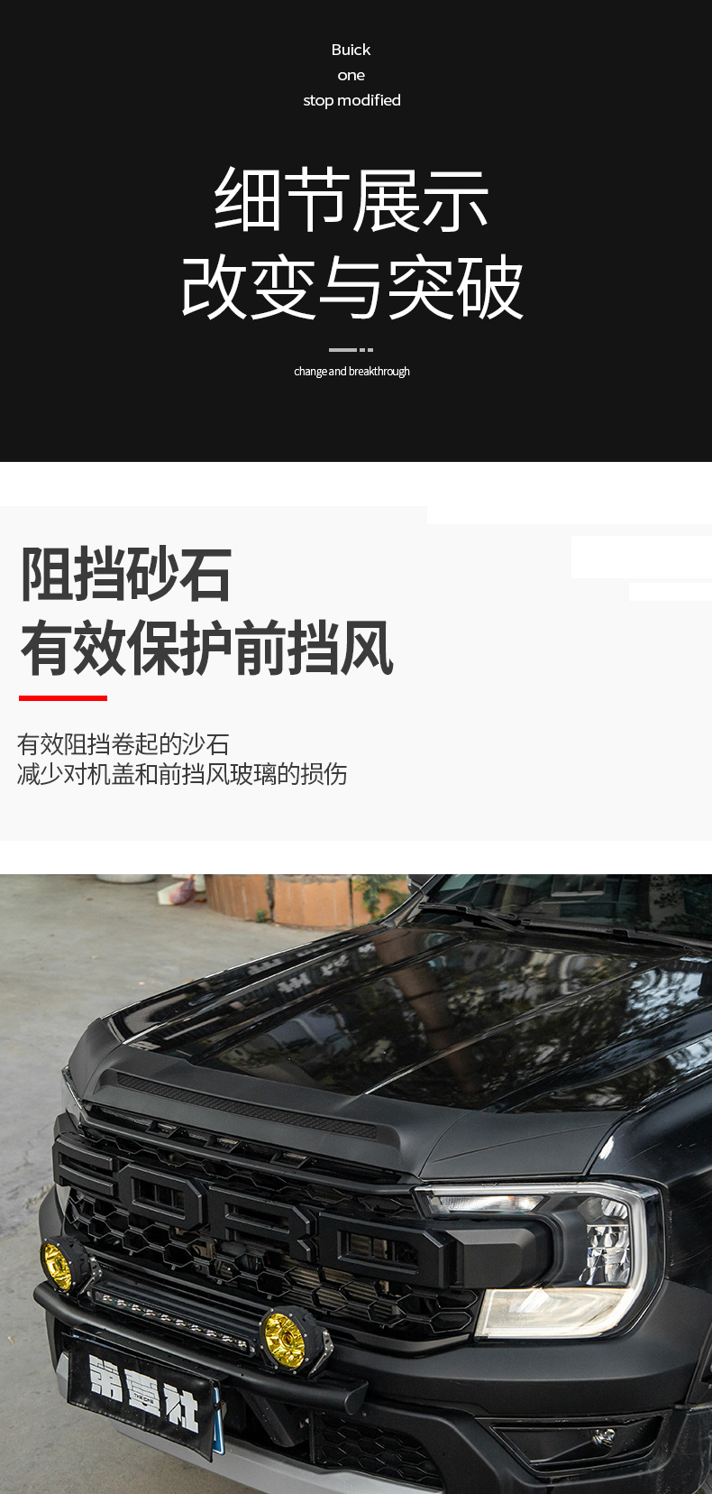 Matte Black Hood Deflector and Sand Stone Guard Protector for Ford Ranger Off-Road Exterior Upgrade