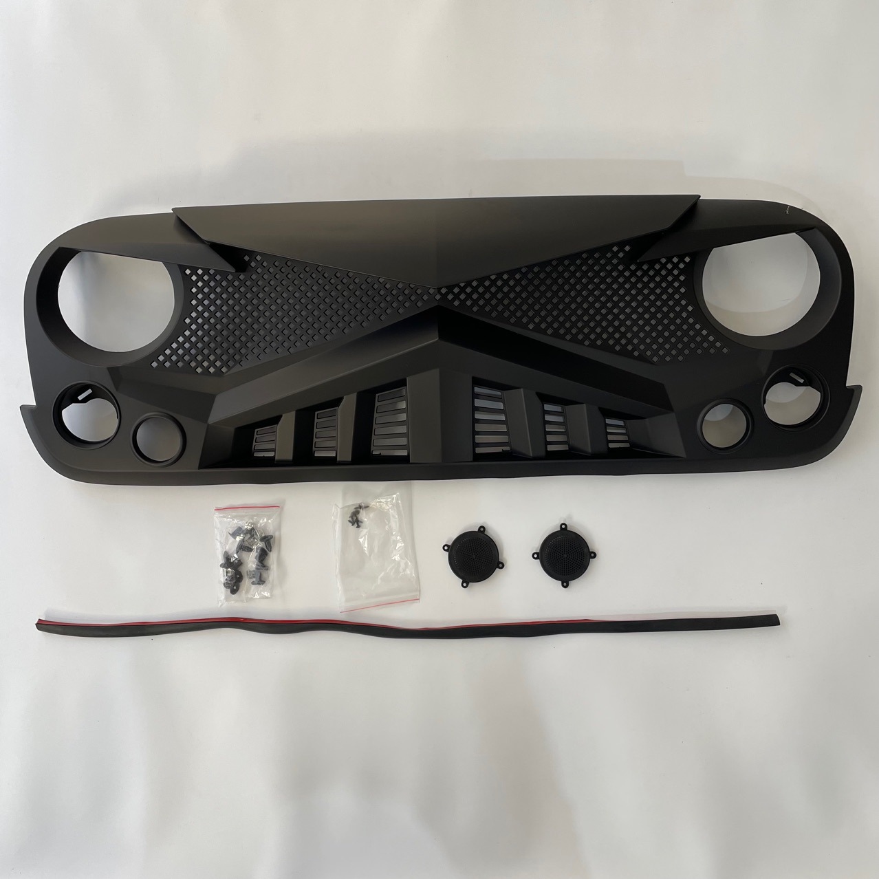 Enhance your 2007-2017 Jeep Wrangler JK with this aggressive Matte Black Knight Style Grille. Made from durable ABS with a bolt-on fit. Perfect for JKU off-roaders.