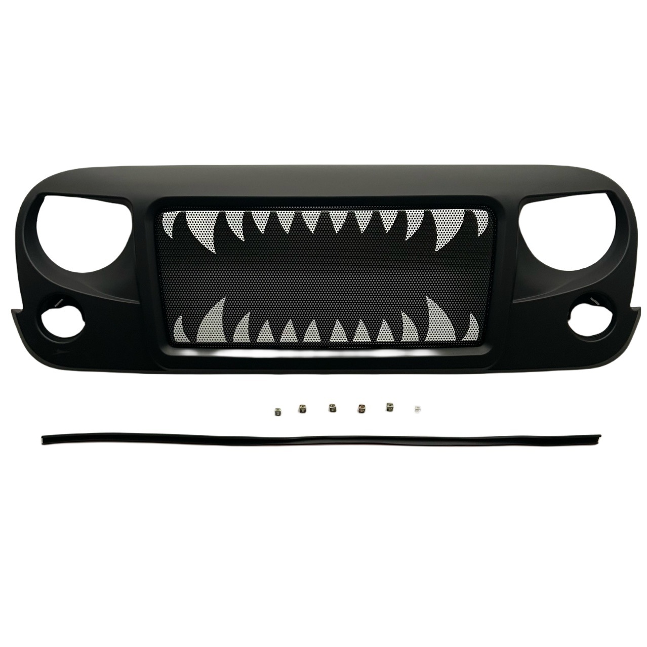 Upgrade your 2007-2017 Jeep Wrangler JK with this aggressive Shark Teeth matte black grille. Durable ABS plastic construction with easy bolt-on installation.