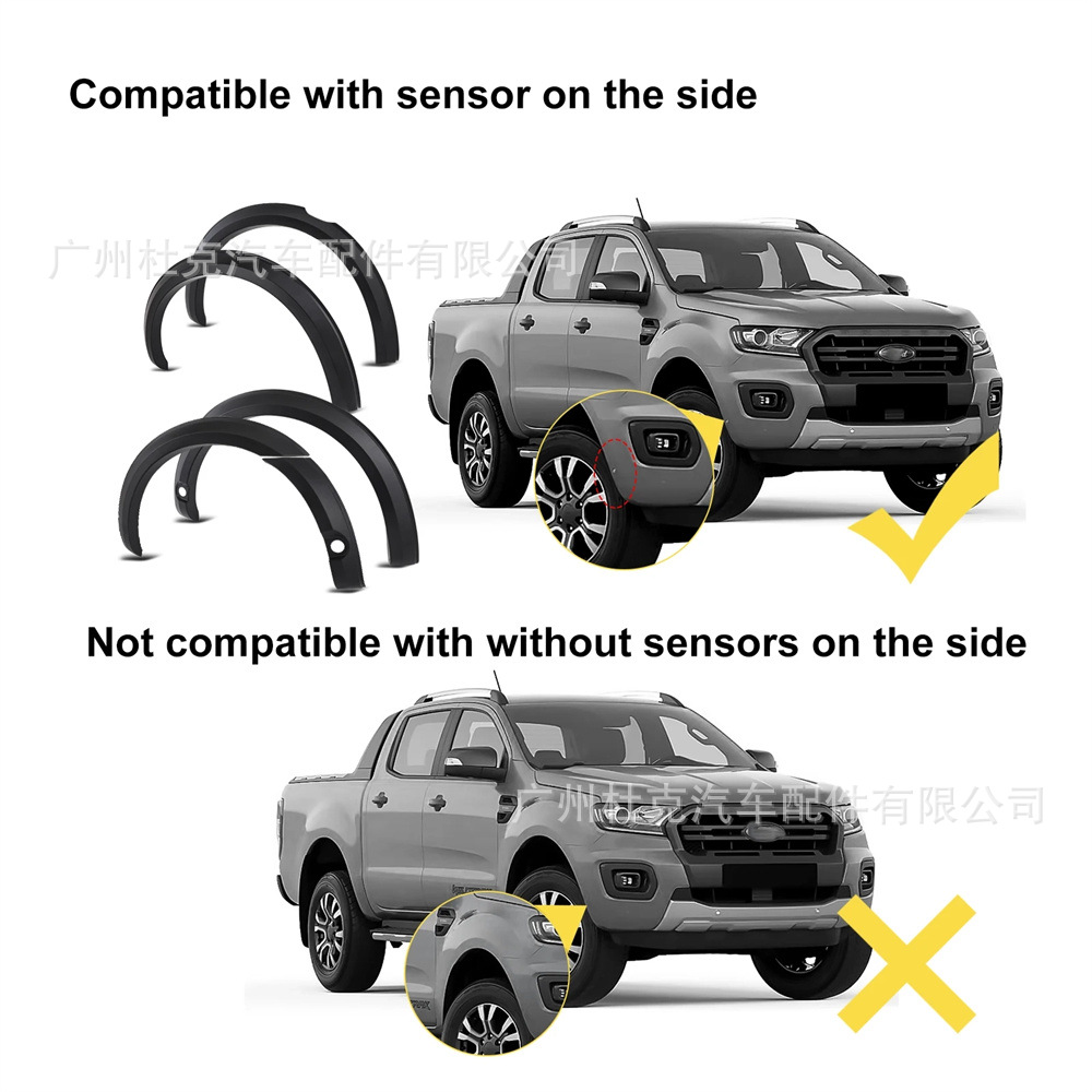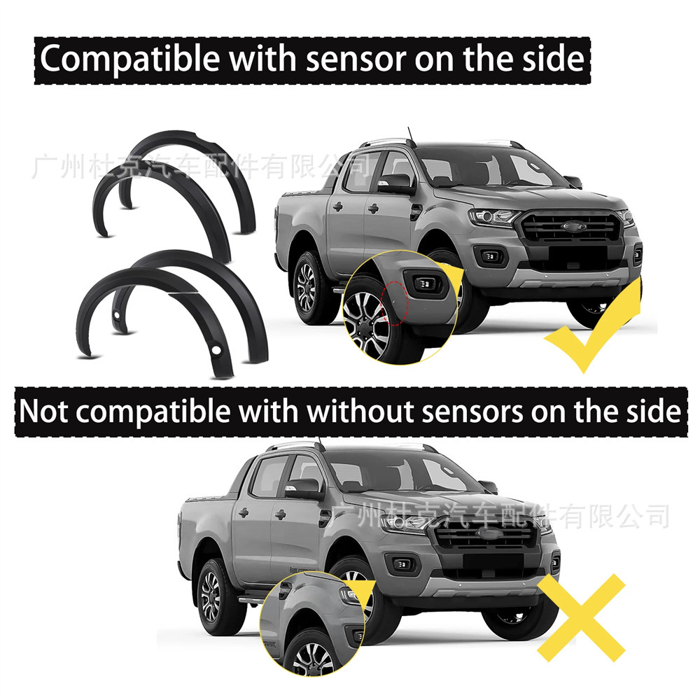 Matte Black Slim Wheel Arch Flares with Sensor Holes for Ford Ranger T8 Anti-Collision Fender Trim Professional Exterior Decoration