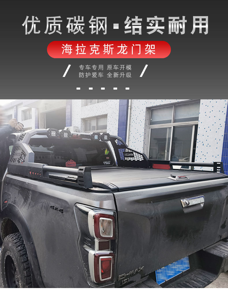 Tags: hilux exterior styling, off-road cargo rack, pickup roll bar, rear safety guard, sports bar with light, truck bed cage, truck roll cage