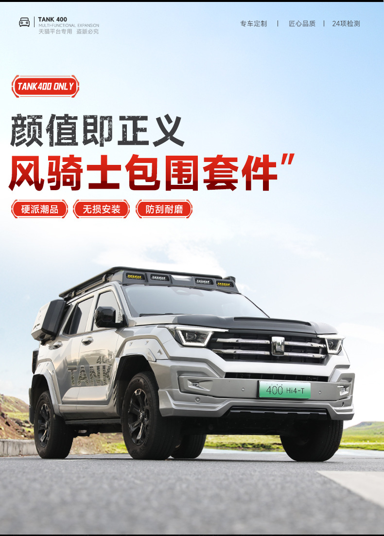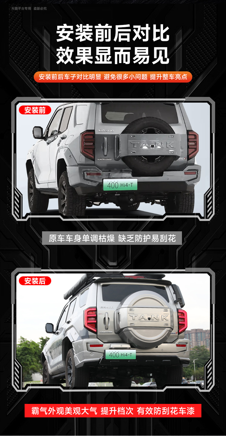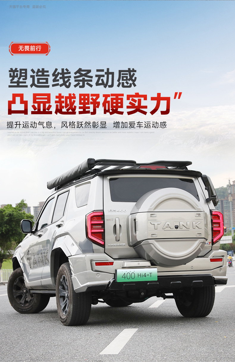 Mecha Style Exterior Body Kit Components Front Rear Bumper and Spare Tire Cover Compatible with Tank 400