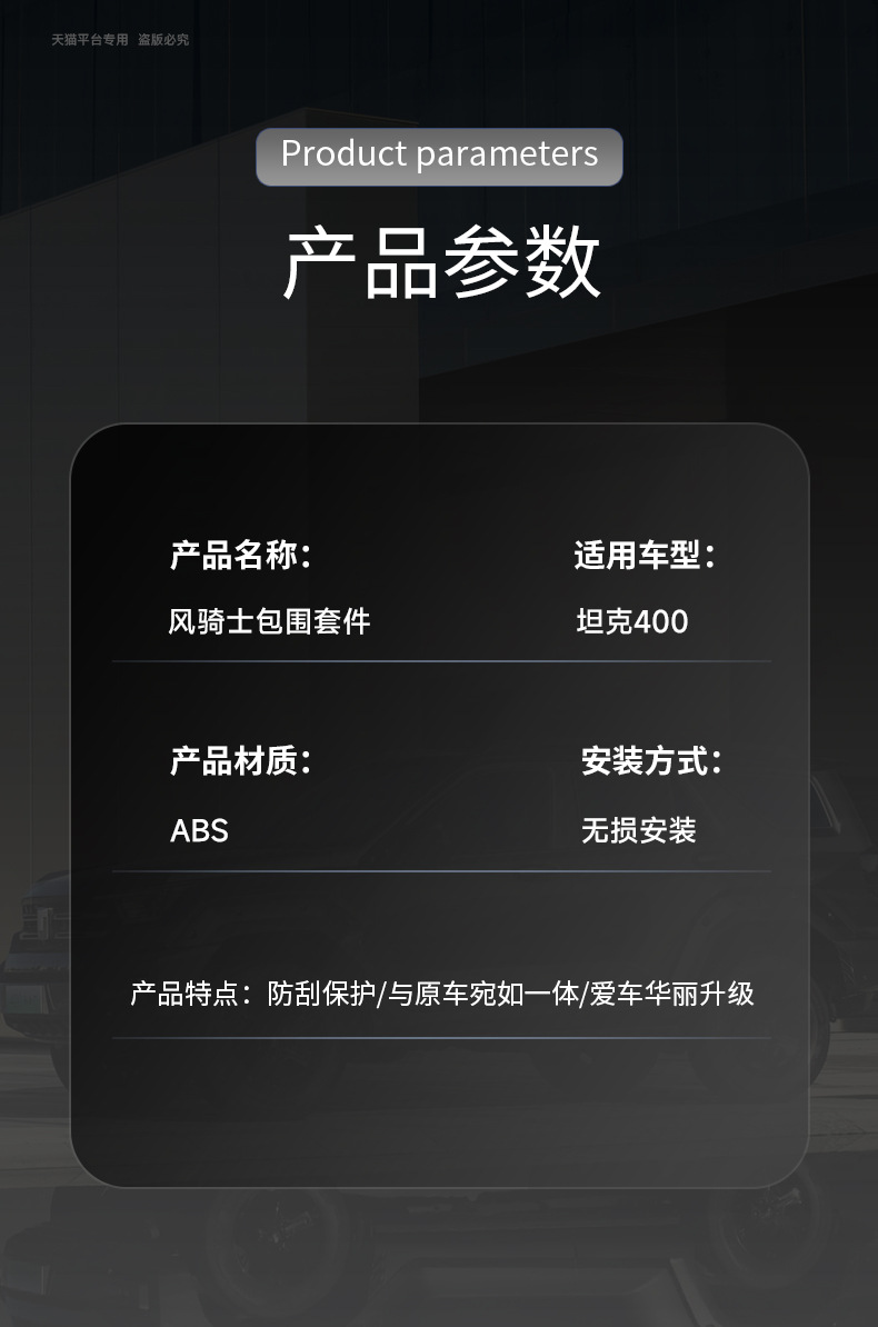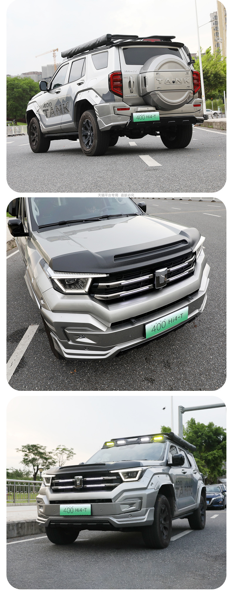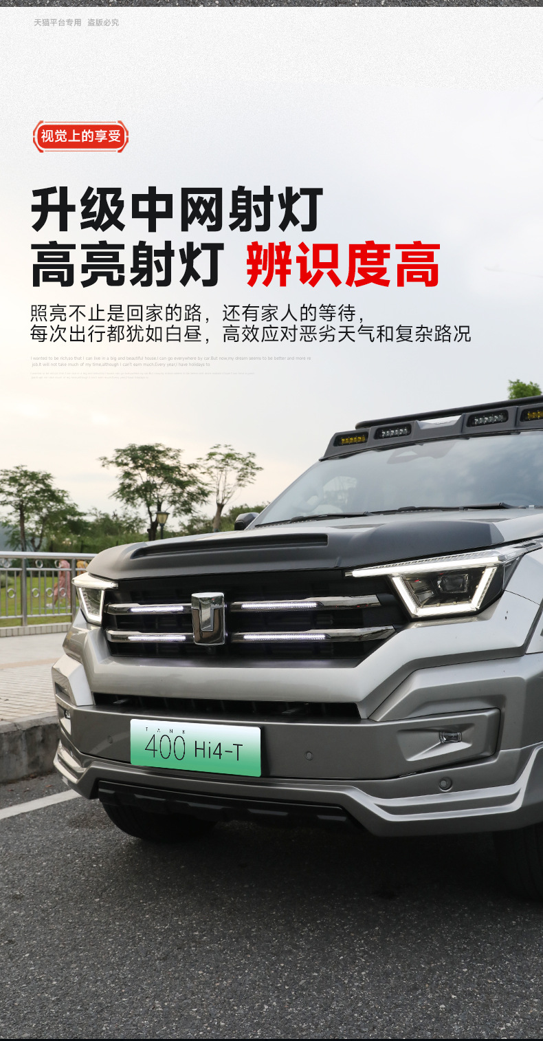 Mecha Style Exterior Body Kit Components Front Rear Bumper and Spare Tire Cover Compatible with Tank 400