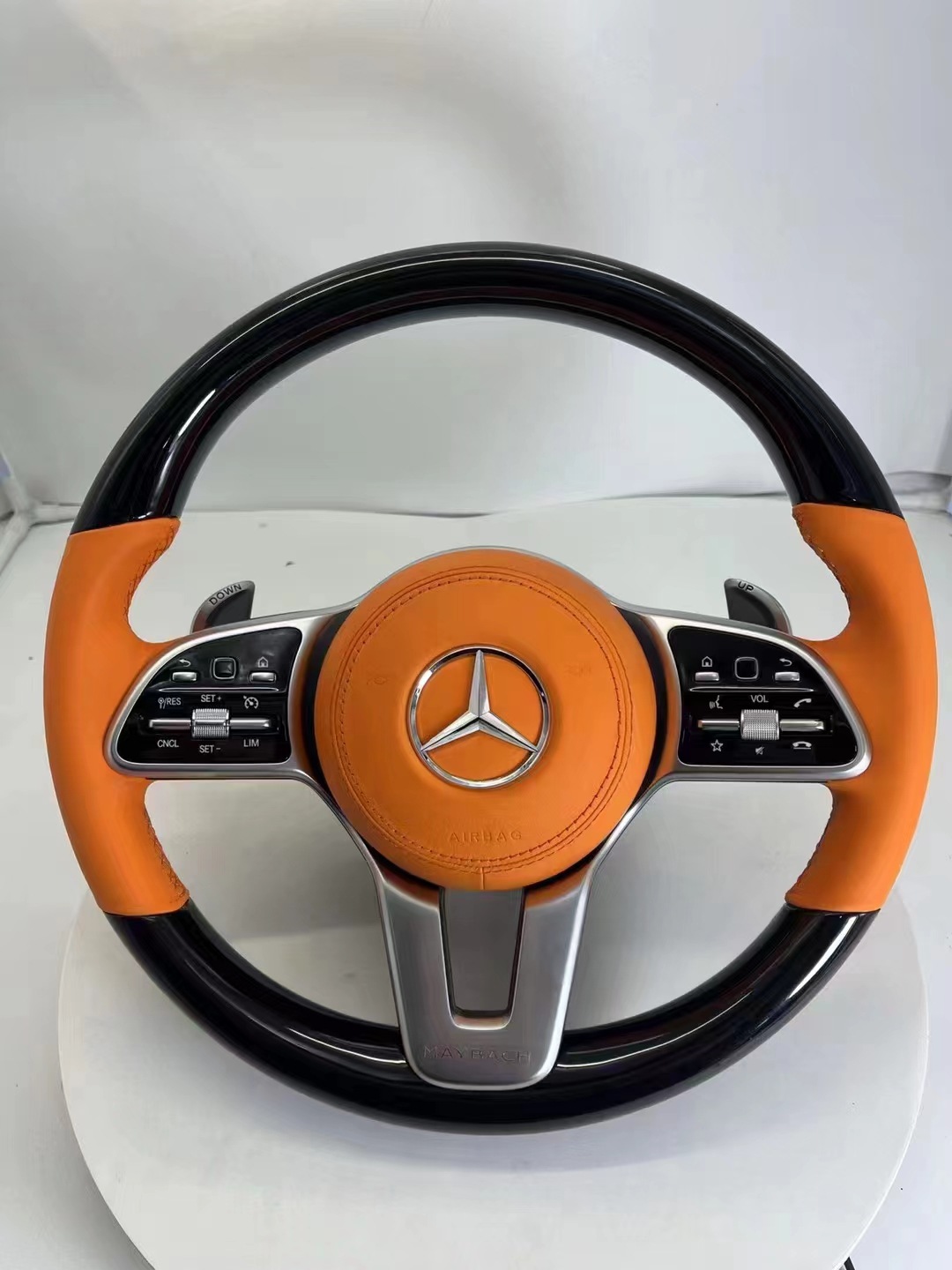 Tags: carbon fiber steering wheel, custom steering wheel, luxury car interior parts, mercedes steering upgrade, steering wheel replacement, walnut wood steering wheel