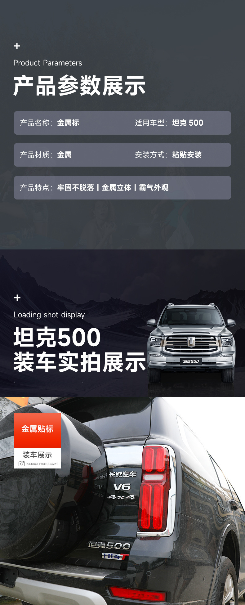 Be the first to review “Metal Tank 500 Lettering Emblem Hood and Side Door Badge Decal for Exterior Decoration” Cancel reply