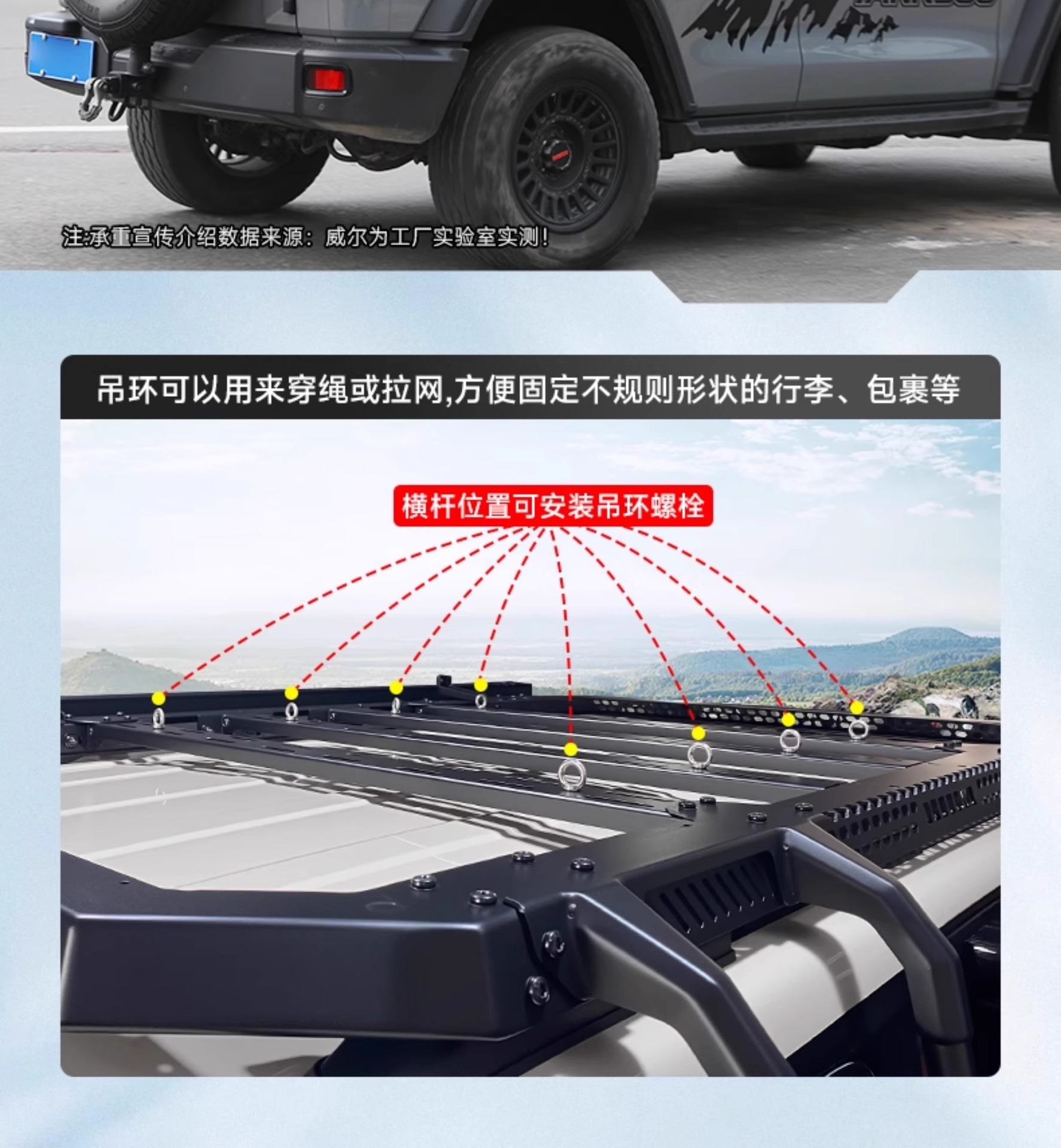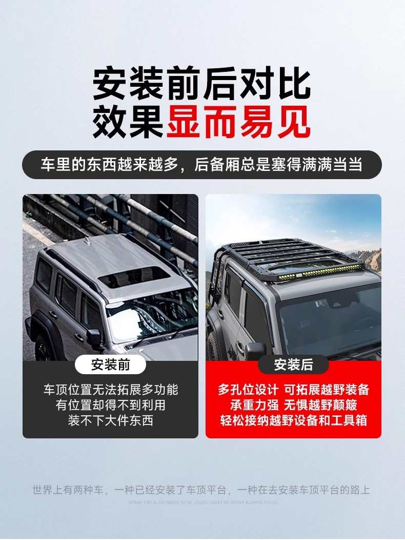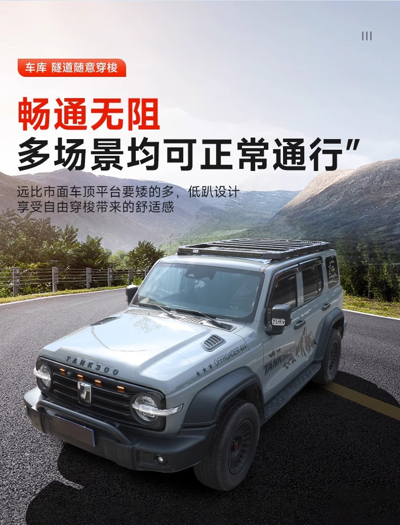 Tags: cargo carrier, integrated led roof light, low profile roof rack, off-road luggage basket, overland gear mount, roof rack platform, Tank 300 accessories