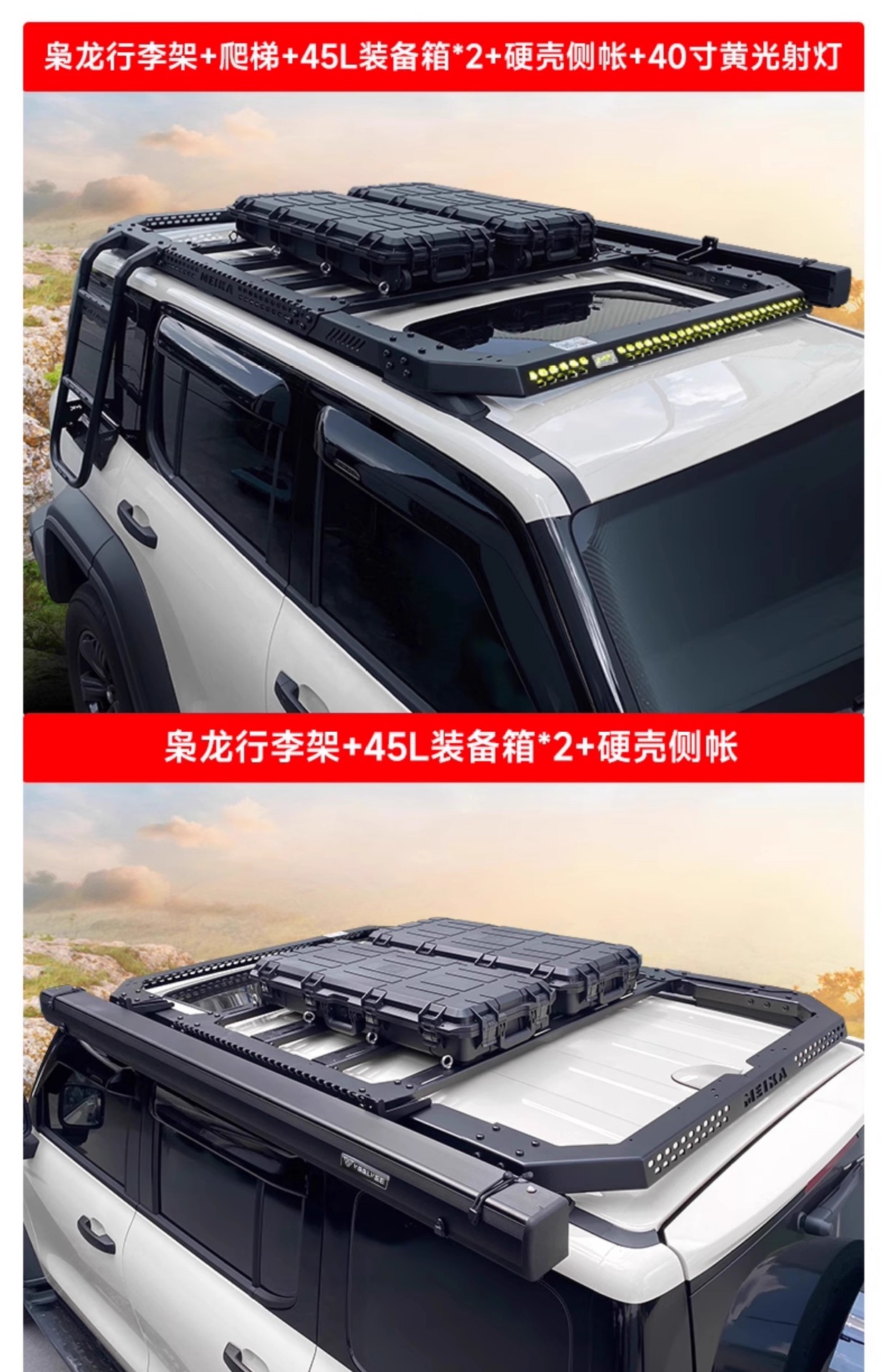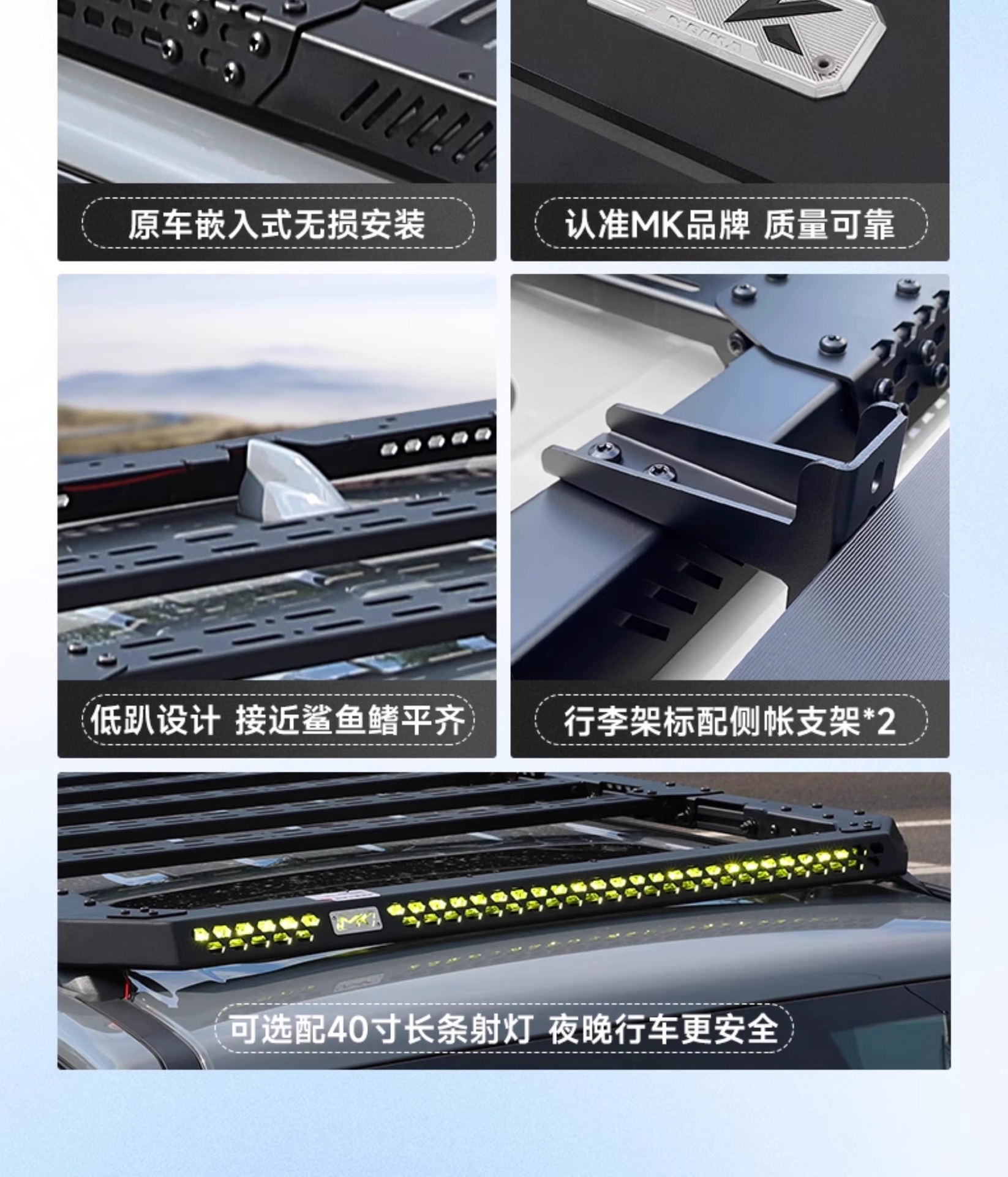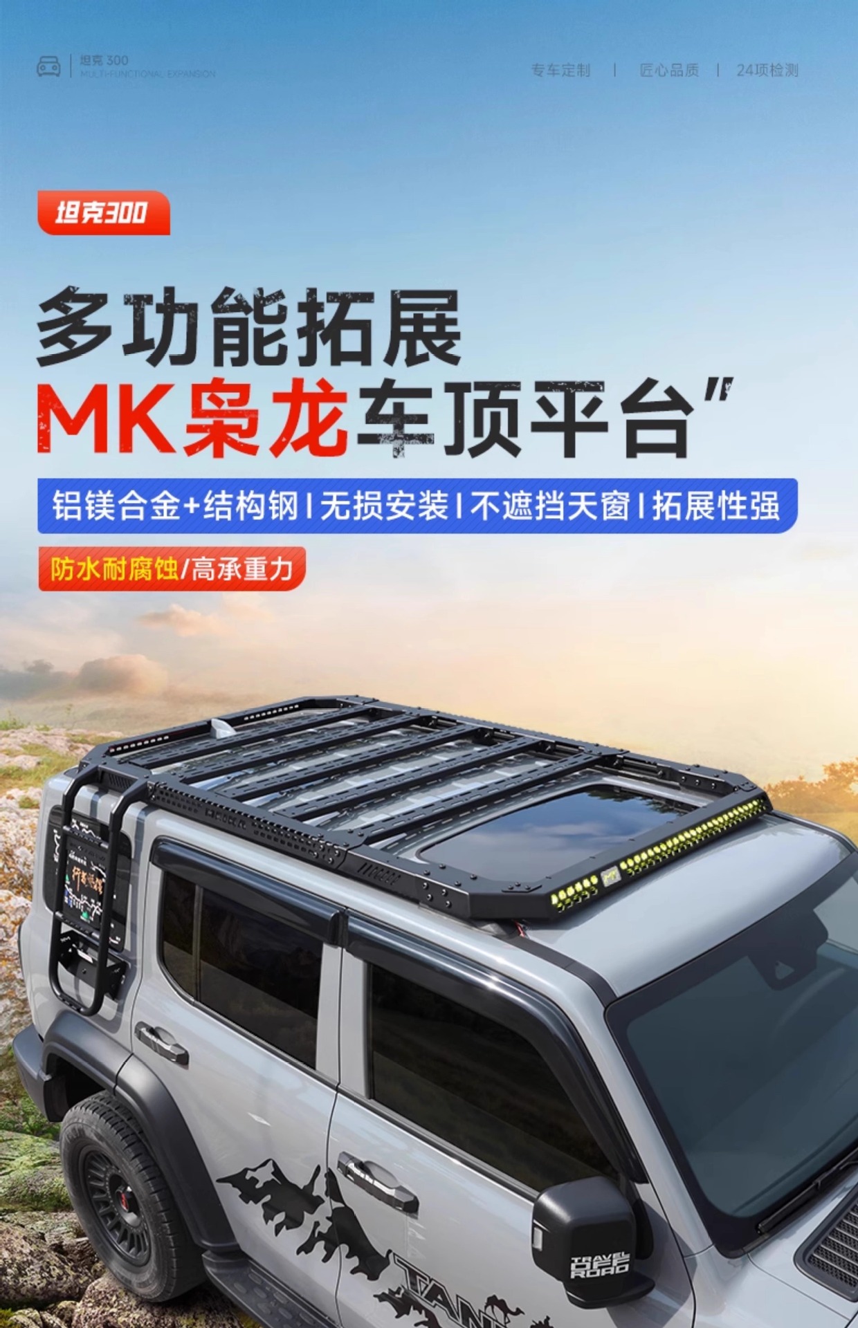 Upgrade your Tank 300 with the MK Embedded Roof Rack Platform. Featuring integrated LED spotlights and a low-profile design for superior off-road utility.