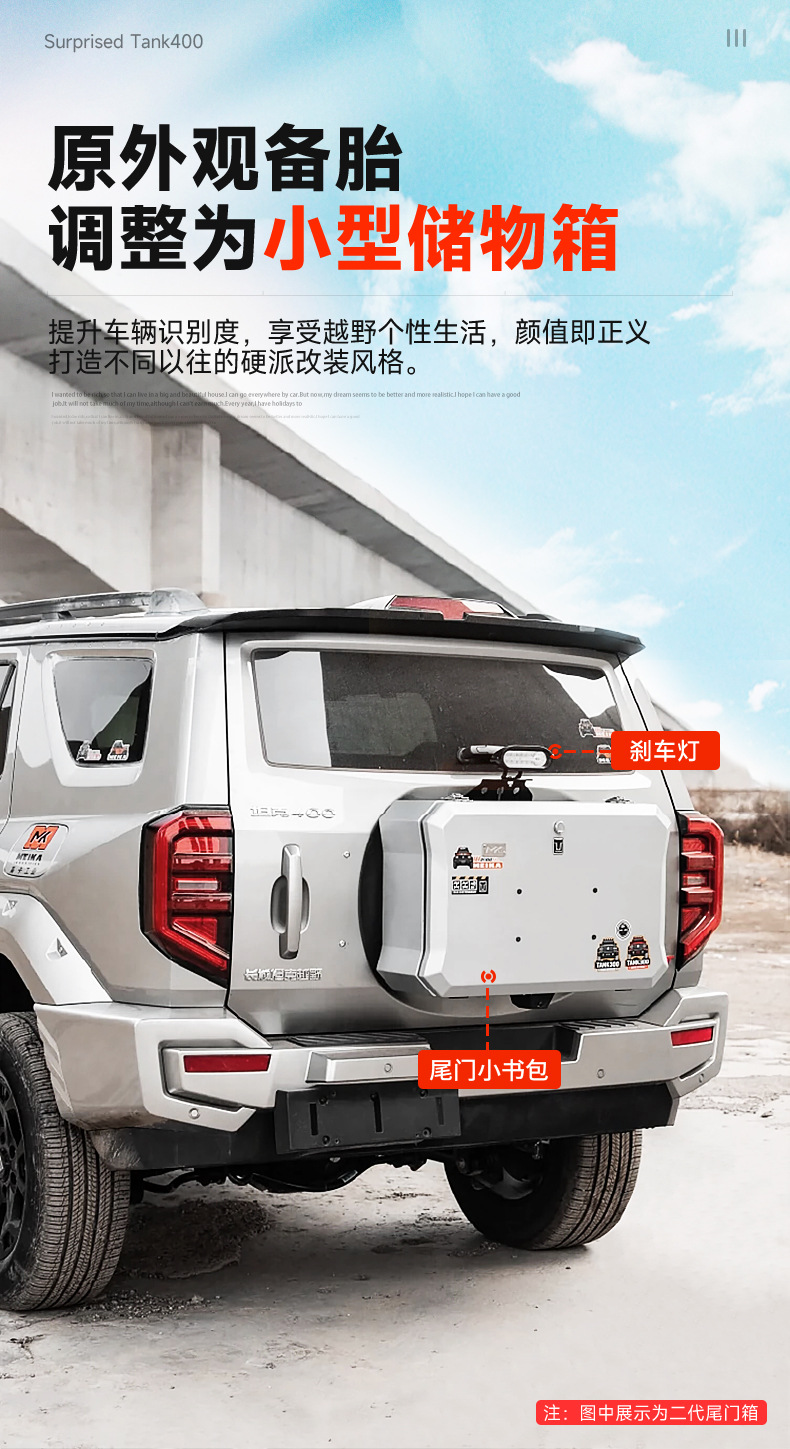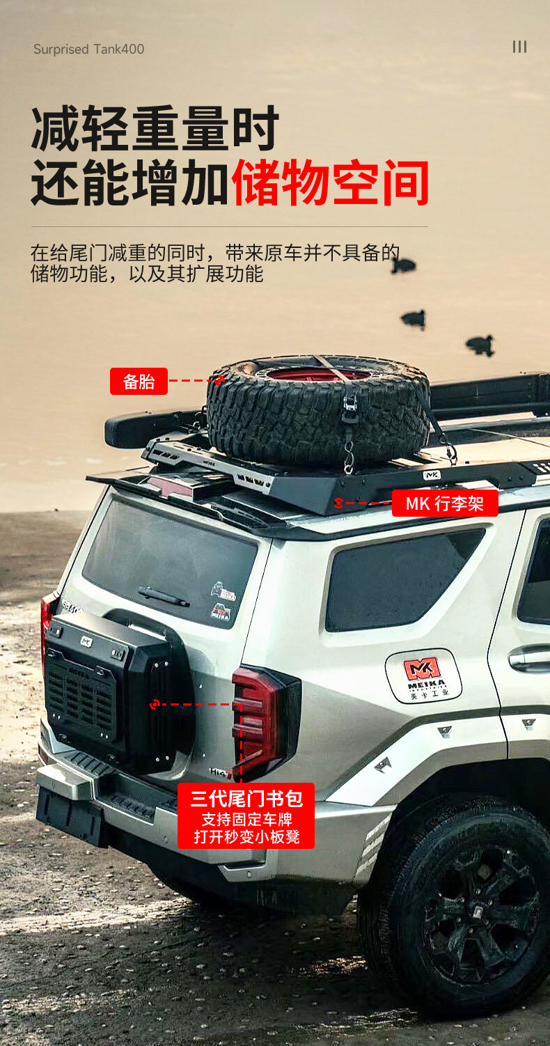 MK Rear Tailgate Storage Box Extension Kit Spare Tire Multi-Functional Cargo Carrier for Tank 400 Hi4-T