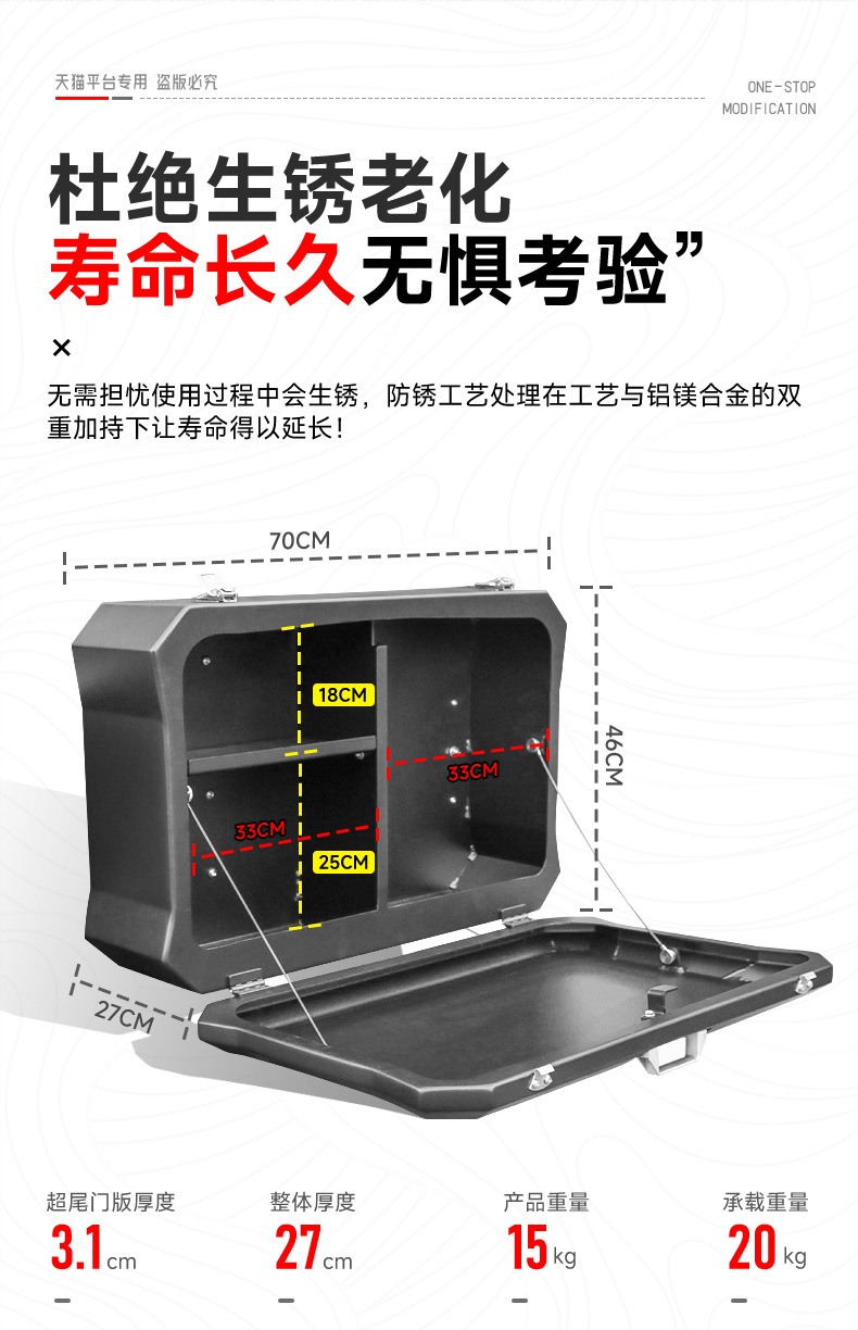 Upgrade your Tank 400 Hi4-T with the MK Multi-functional Tailgate Storage Box. Durable, weatherproof, and easy to install for organized off-road adventures.