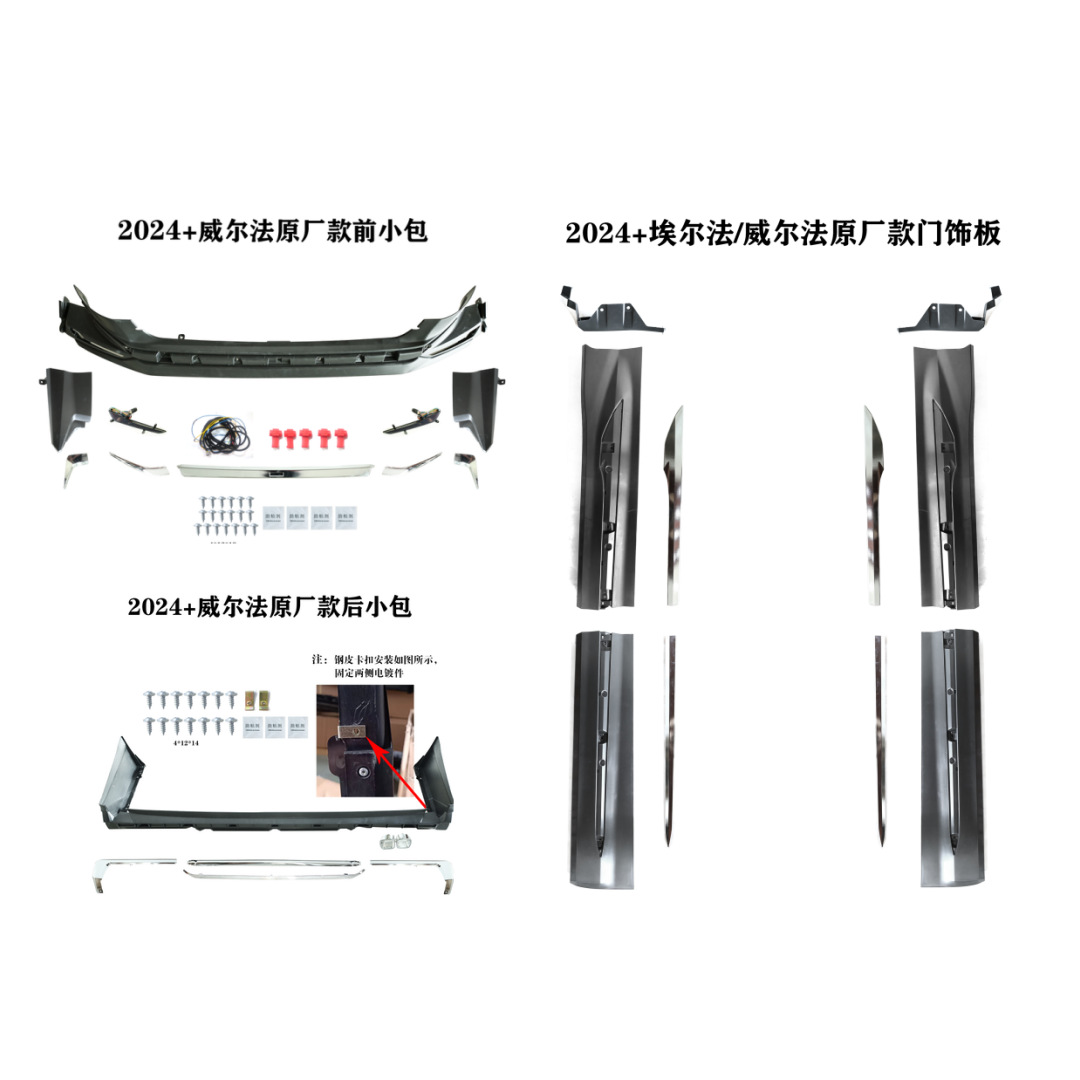 Tags: 2024 Vellfire accessories, front bumper lip, luxury car styling, rear diffuser trim, side skirts extension, Vellfire 40 body kit