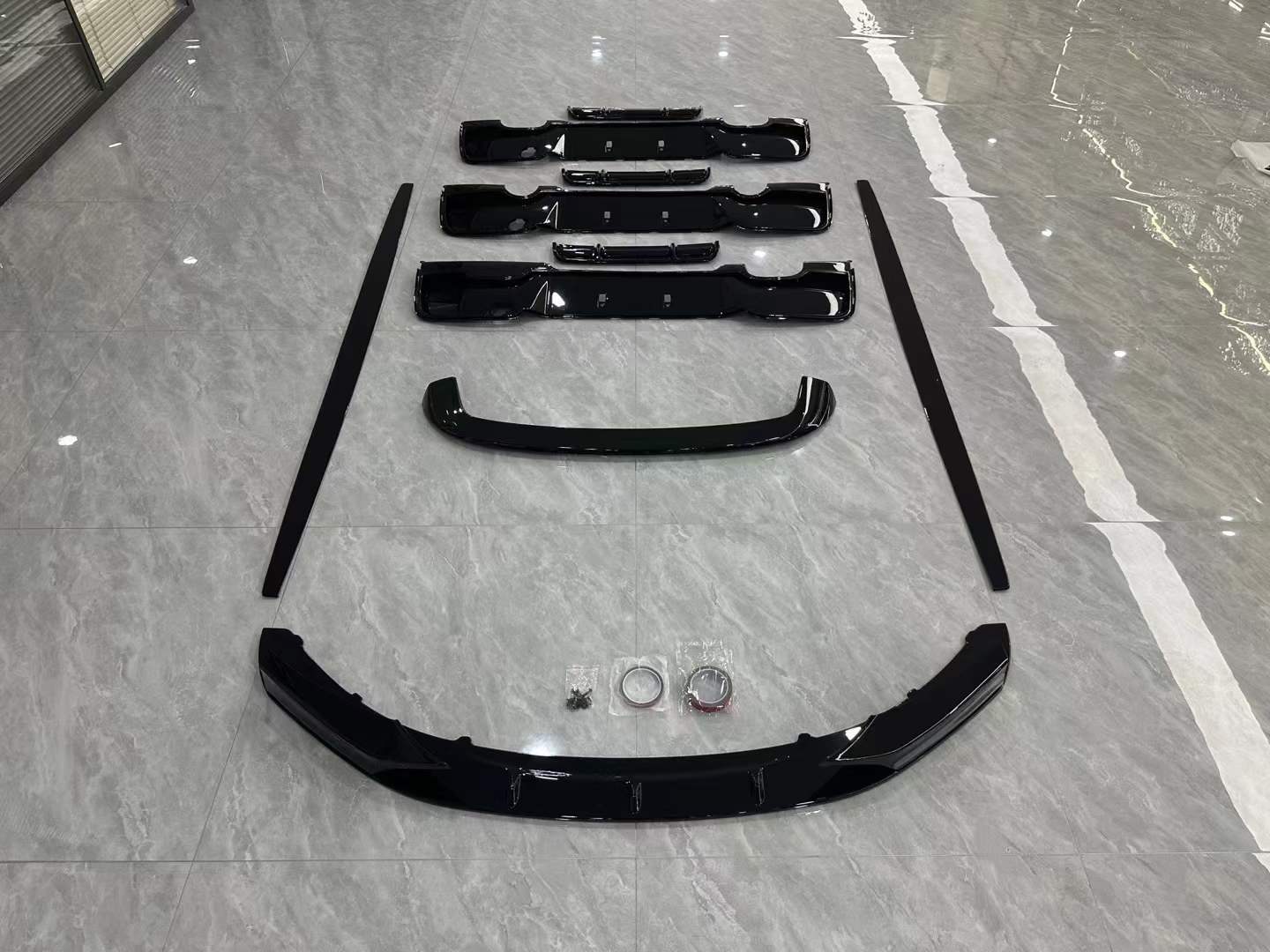 - Complete aerodynamic upgrade including front lip, side skirts, and rear diffuser for a cohesive blackout aesthetic.