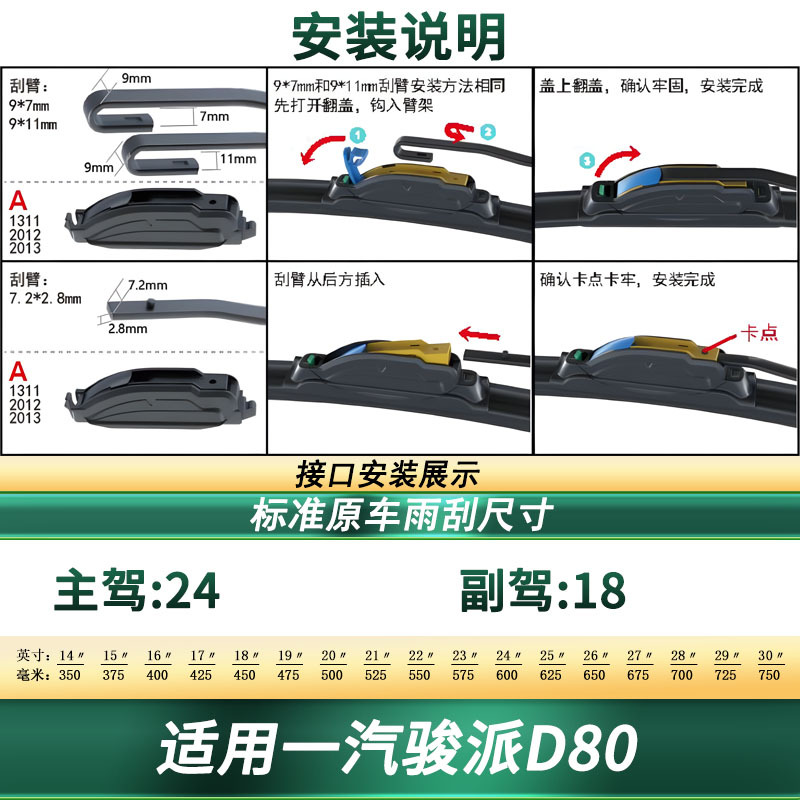 Upgrade your FAW Junpai D80 with high-performance frameless wiper blades. Durable natural rubber and aerodynamic design ensure silent operation and clear vision.