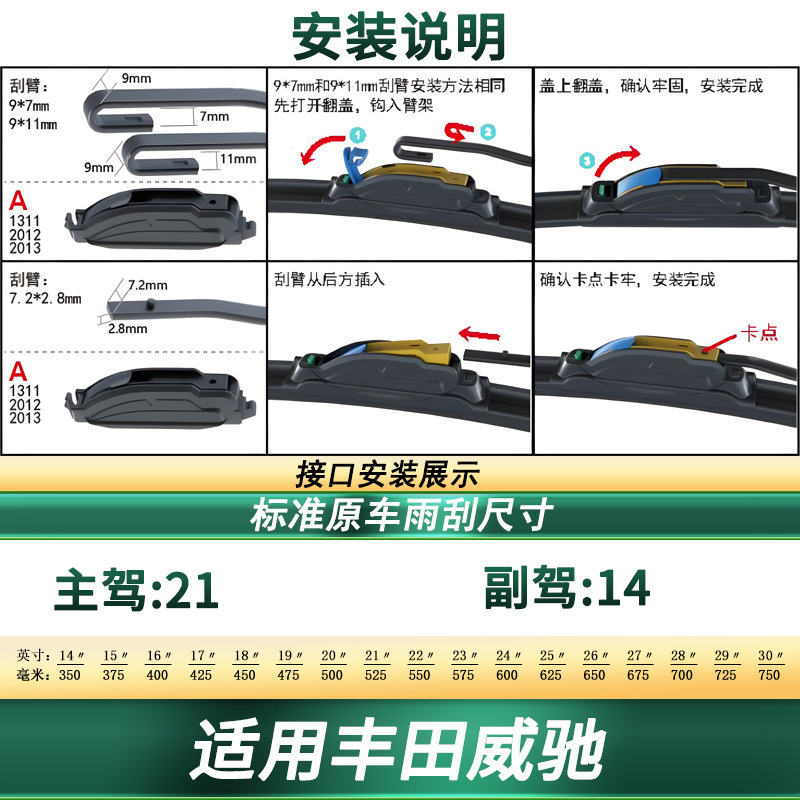 - Integrated multi-functional adapter system ensures quick and easy installation on vehicle wiper arms without complex tools.