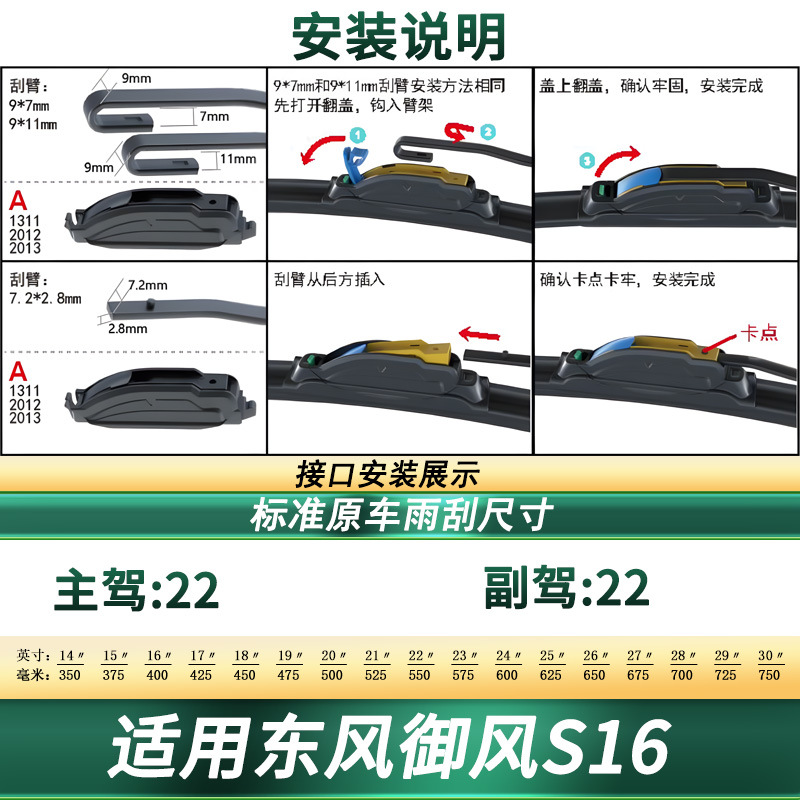 Multi-Function Frameless Wiper Blades, Quiet Rubber Strip Windshield Wipers for Dongfeng Yufeng S16