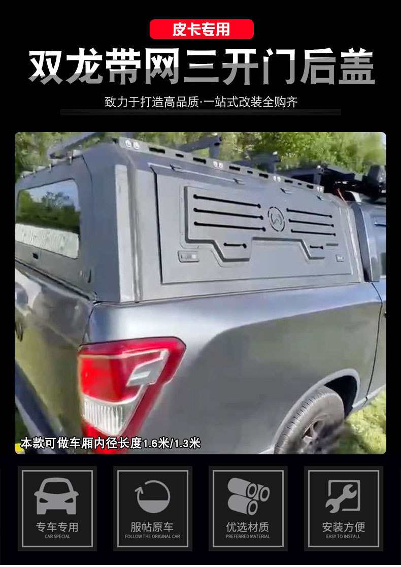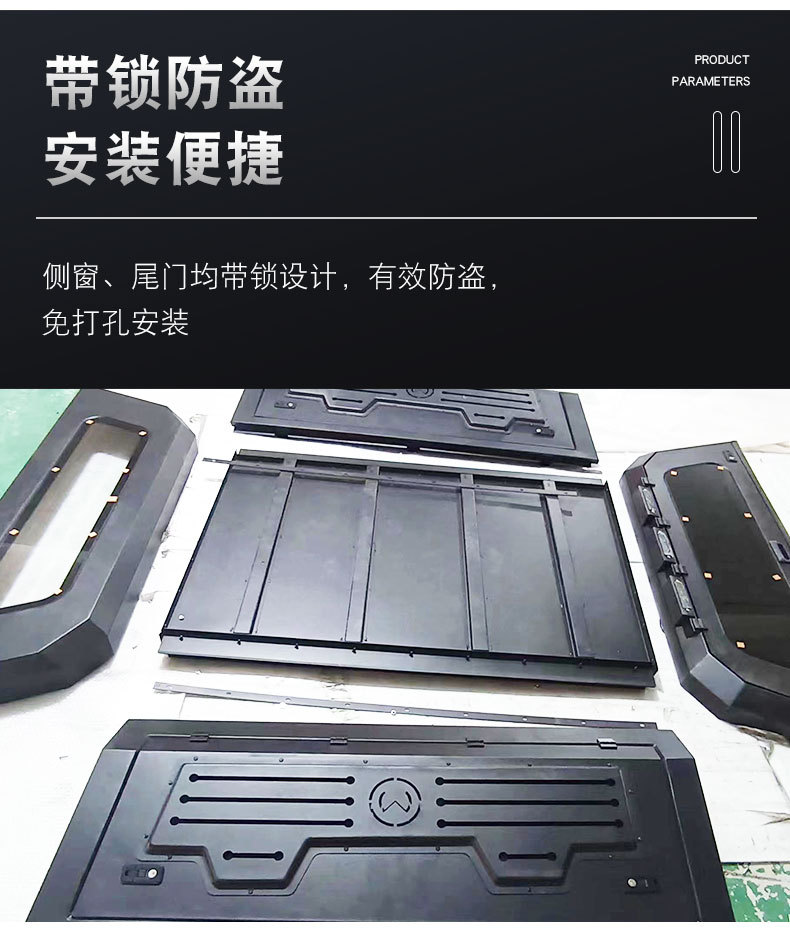 Tags: 3-door truck topper, Musso Sport accessories, pickup bed canopy, rear cargo cover, theft protection mesh, truck hardtop cover