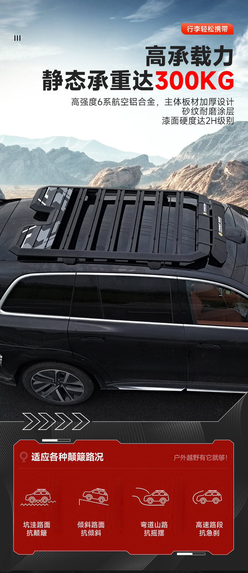 - Expansive platform surface area maximizes storage capacity for outdoor gear, camping equipment, and overlanding tools.