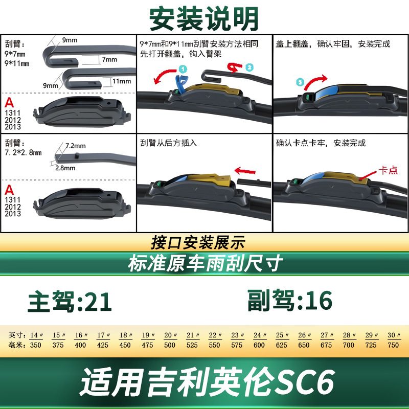 • Precision-engineered for direct replacement of original wiper blades on Geely Englon SC6 models.