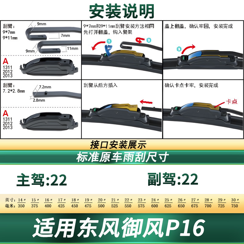 Upgrade your driving visibility with our premium frameless windshield wiper blades for Dongfeng Yufeng P16. Silent, durable, and easy to install for all seasons.