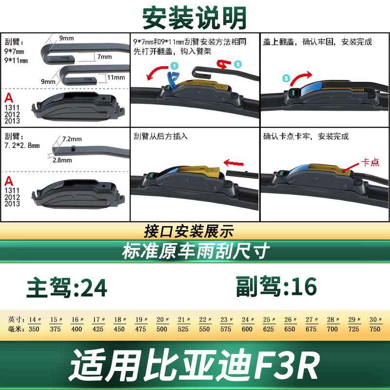 Tags: automotive exterior accessories, BYD F3R parts, frameless wiper blades, front windscreen wipers, quiet wipers, windshield wipers, wiper blades