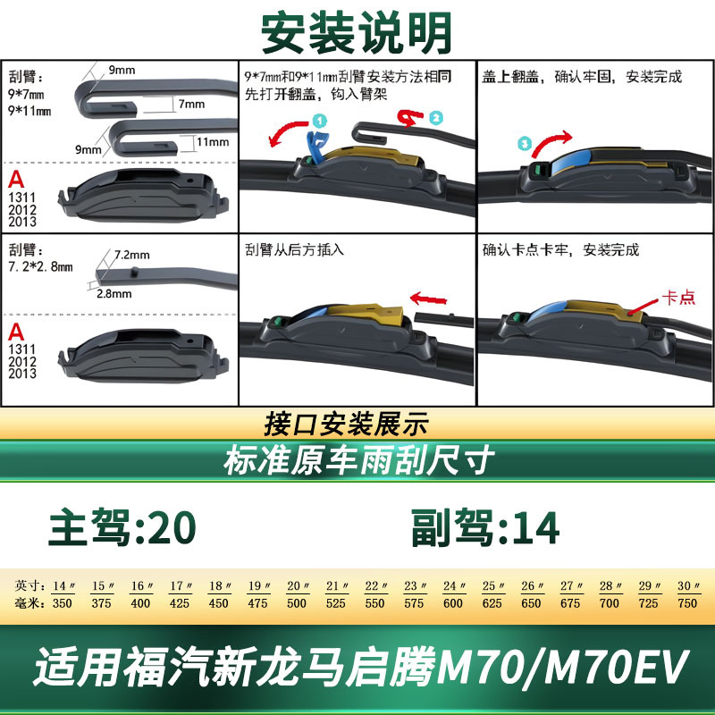 Multi-Functional Frameless Windshield Wiper Blades for Keyton M70/EV All-Season Silent Rubber Strip