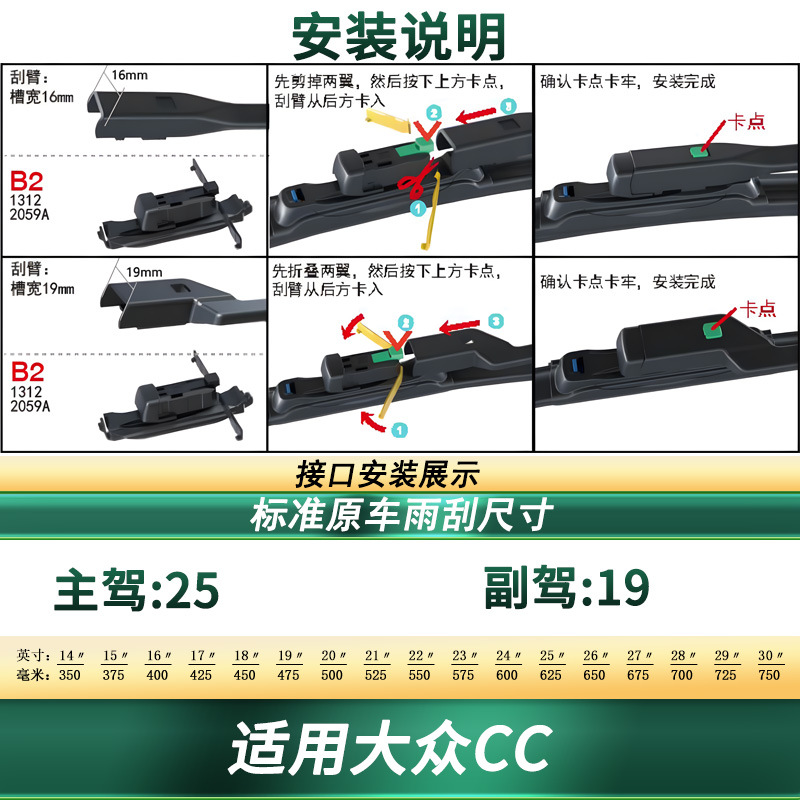 Tags: automotive exterior parts, frameless wipers, front wiper kit, silent rubber blades, VW CC accessories, windshield wipers, wiper blades