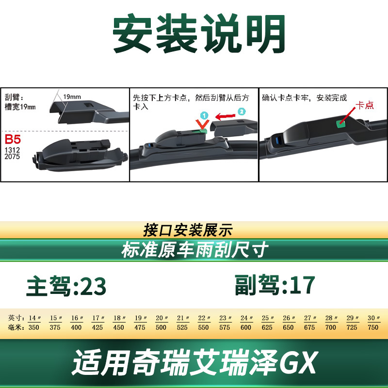 Upgrade your Chery Arrizo GX with high-quality frameless windshield wiper blades. Featuring silent natural rubber for streak-free visibility in all weather conditions.