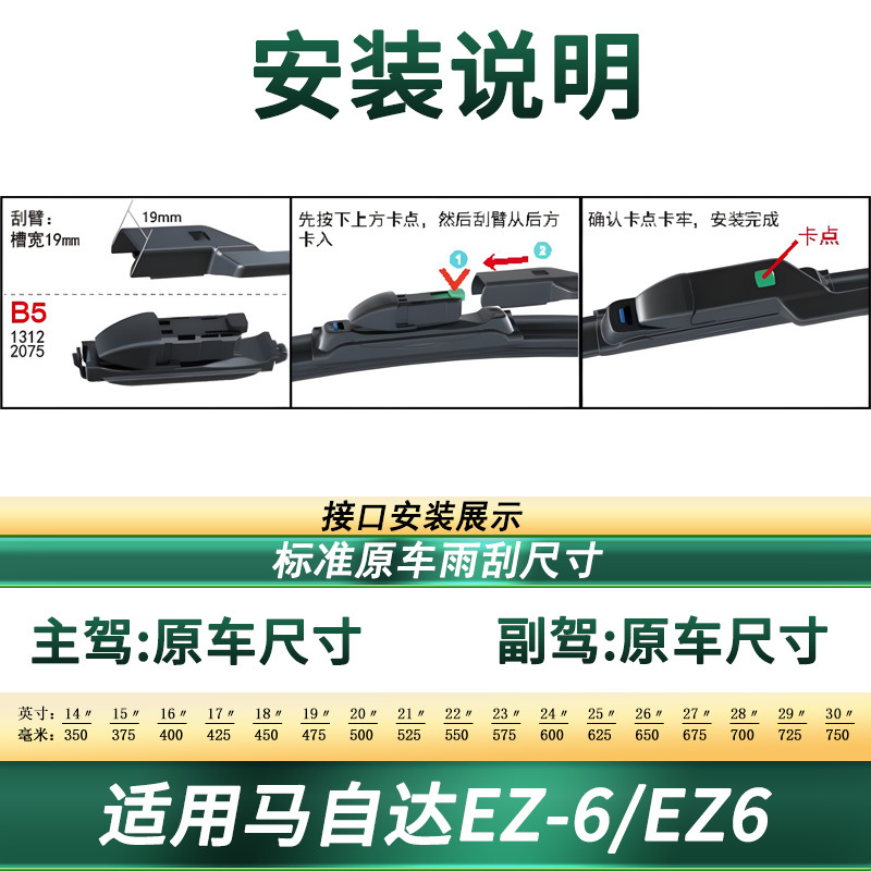 Tags: automotive wiper set, frameless wipers, front window blade, Mazda EZ-6 accessories, silent wiper refills, windshield wipers, wiper blades