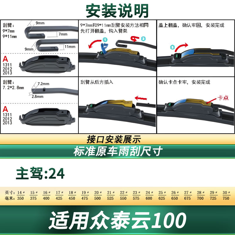 Tags: automotive replacement parts, car window cleaning, frameless wipers, silent wiper strips, windshield wipers, wiper blades, zotye parts