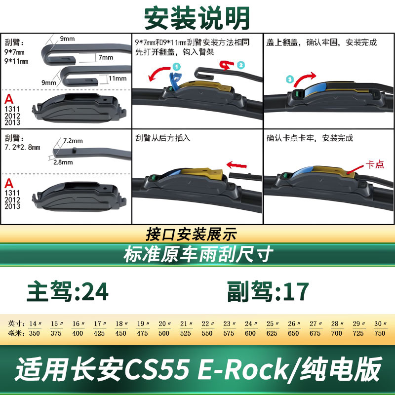 Upgrade your Changan CS55 E-Rock with silent frameless windshield wiper blades. Features premium graphite-coated rubber for smooth, streak-free visibility.