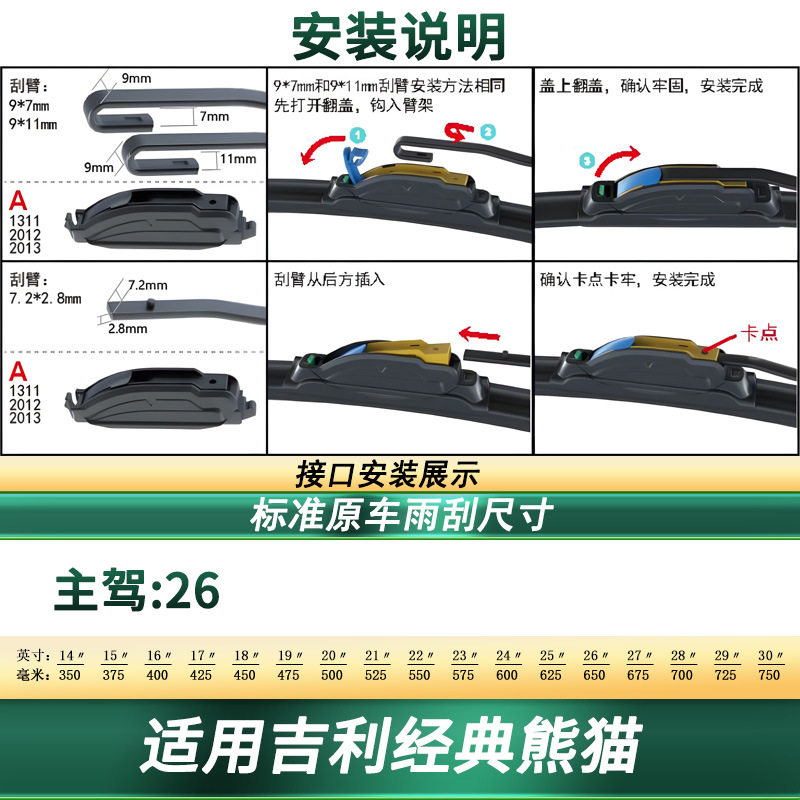Multi-Functional Frameless Windshield Wiper Blades Silent Rubber Refills for Geely Panda