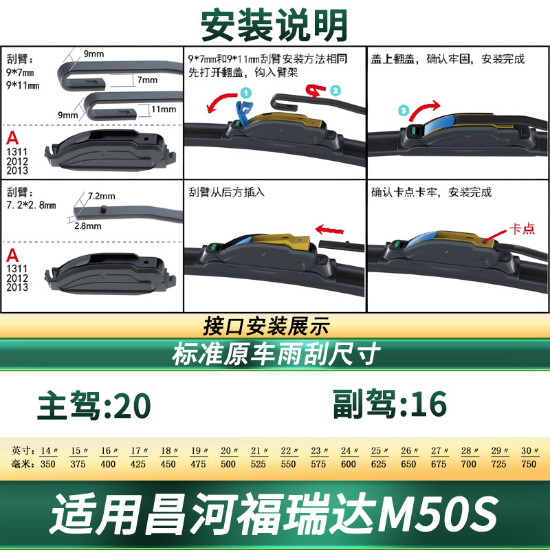 Upgrade your driving visibility with our specialized frameless silent wiper blades for Changhe M50S. Featuring durable natural rubber for streak-free performance.
