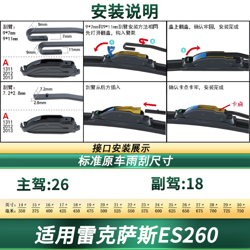 Upgrade your driving visibility with these premium frameless wiper blades for Lexus ES260. Featuring silent rubber technology and durable multi-functional design.