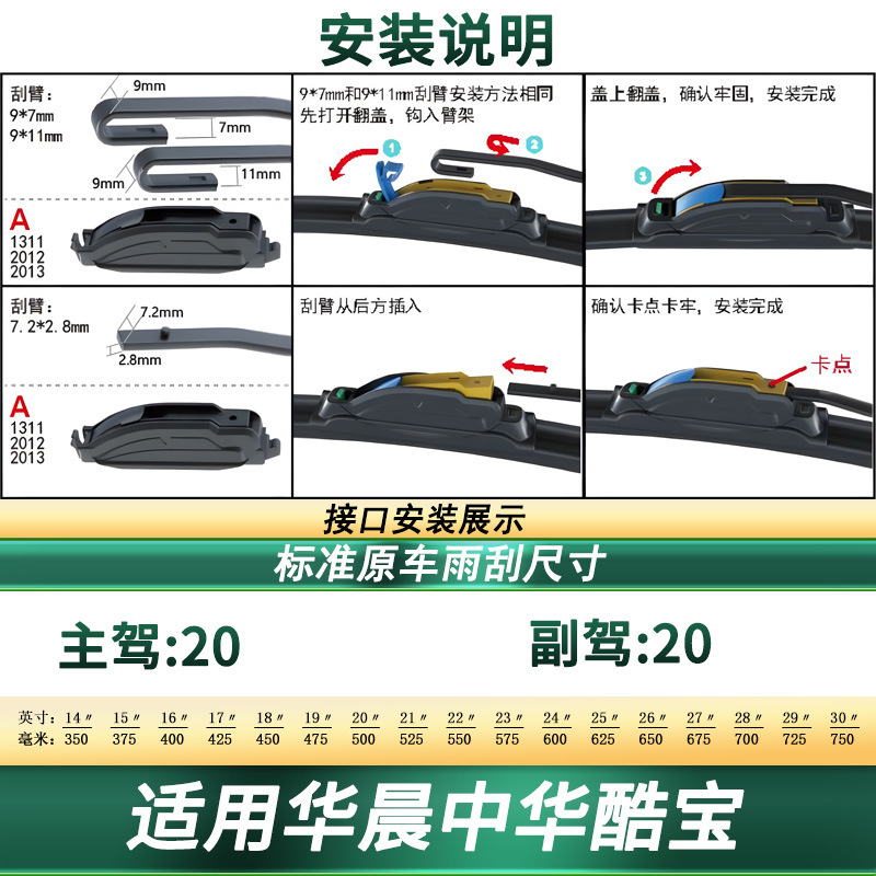 Multi-Functional Frameless Windshield Wiper Blades Silent Rubber Refills for Brilliance M3 Coupe