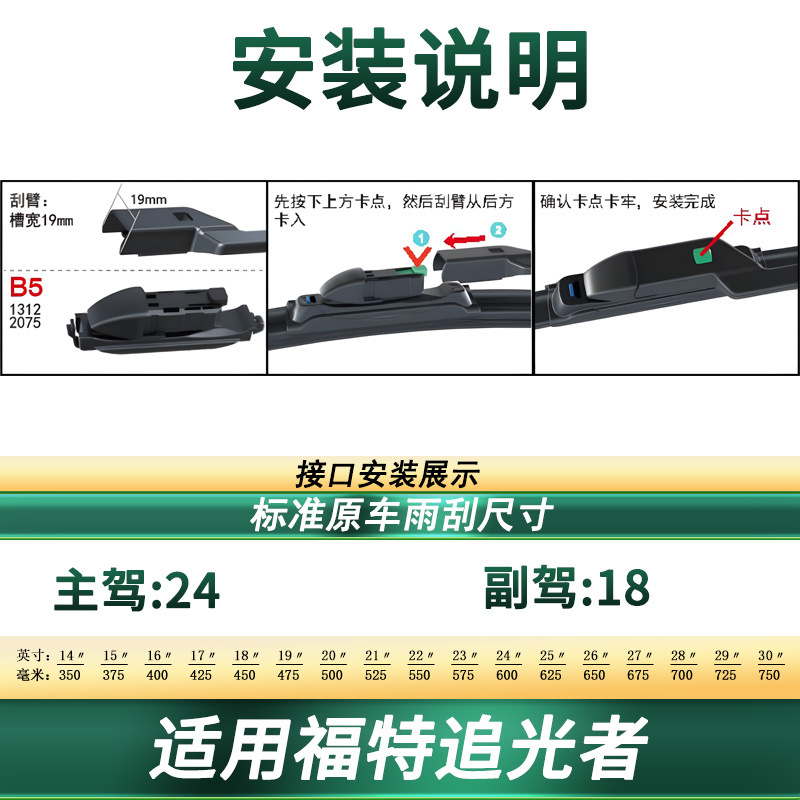 Upgrade your driving visibility with our premium frameless windshield wiper blades for Ford EVOS. Silent rubber technology ensures a streak-free, quiet wipe.
