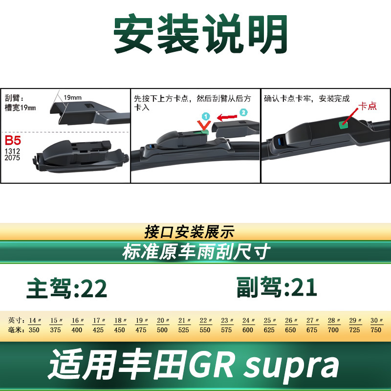 - Perfectly compatible with Toyota GR Supra specialized wiper arm interfaces for seamless installation.